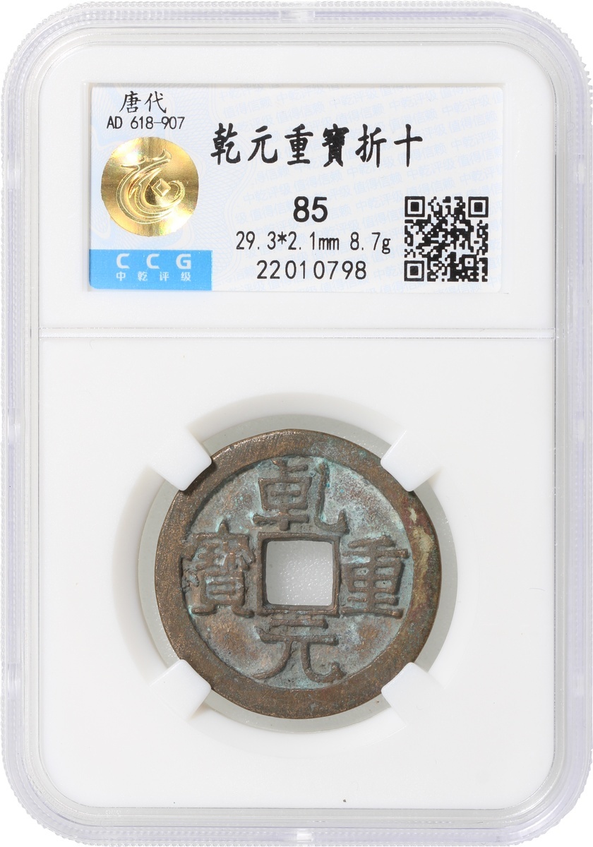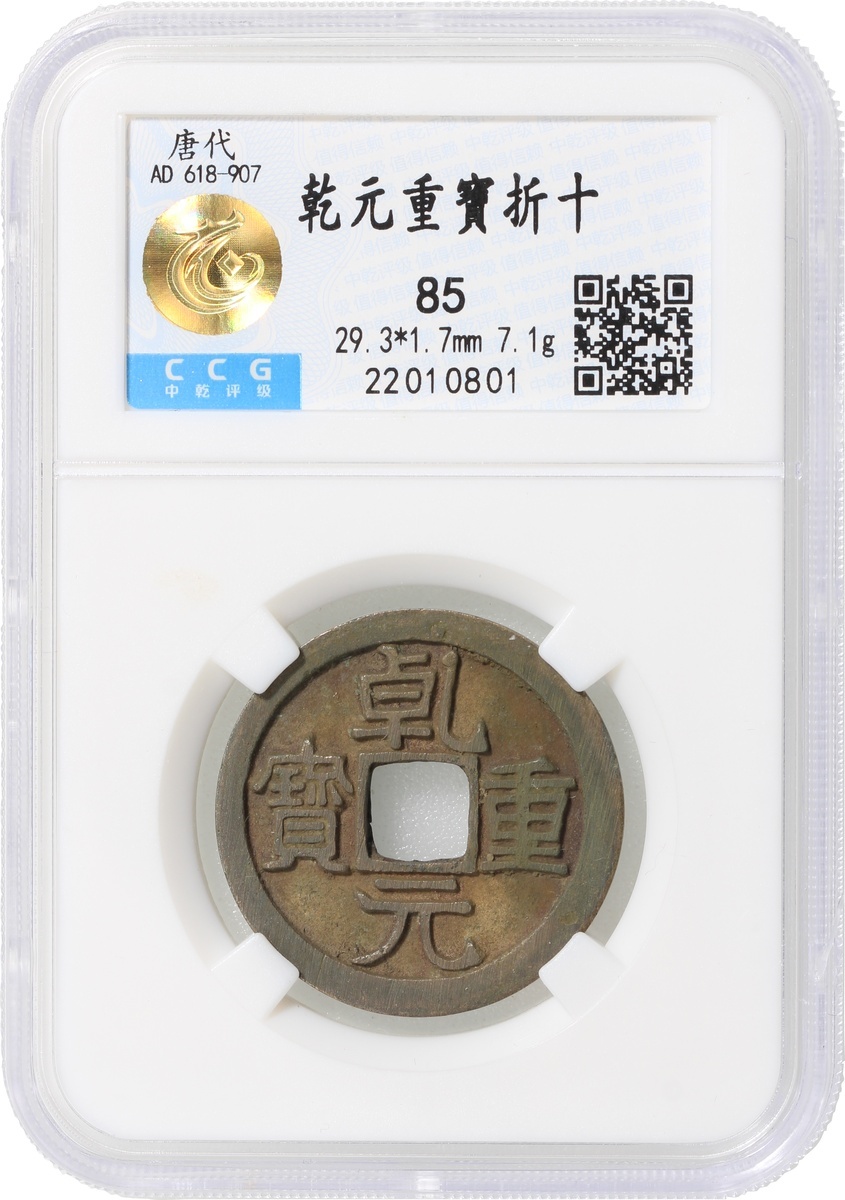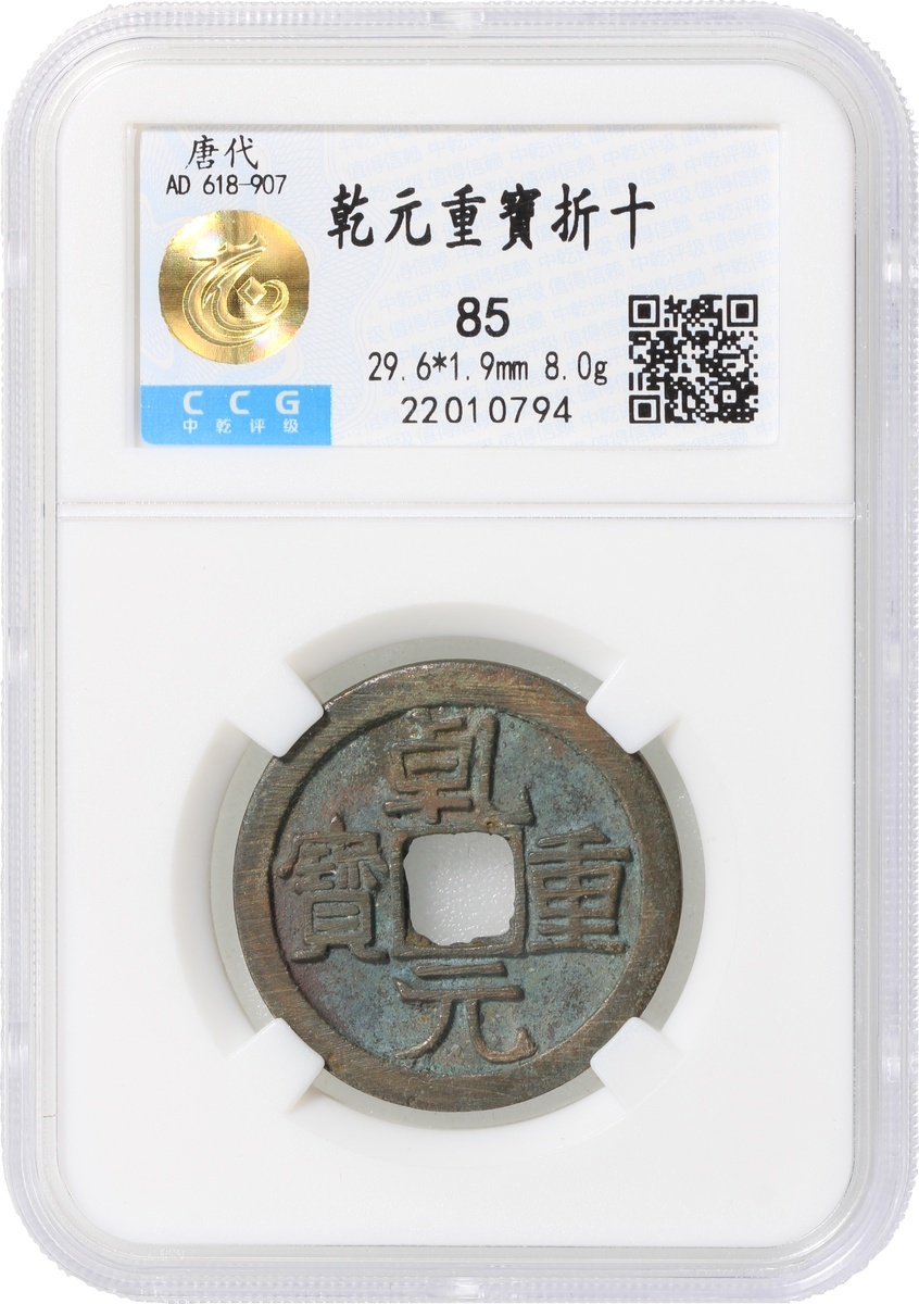 唐代乾元重寶折十,一組三枚,均經中乾評級85,編號22010801, 22010794及22010798