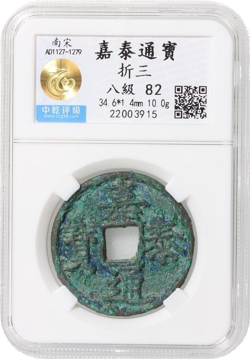 南宋嘉泰通寶折三,中乾評級82,編號22003915