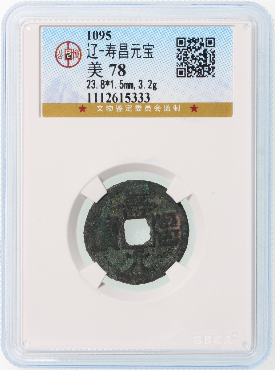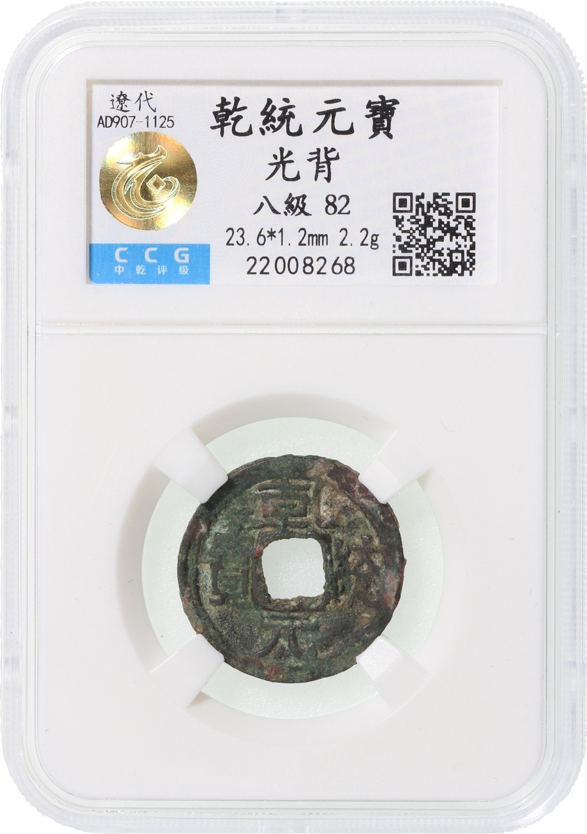 遼代乾統元寶,中乾評級82,及遼代壽昌元寶,公博評級78,編號分別為22008268 及1112615333