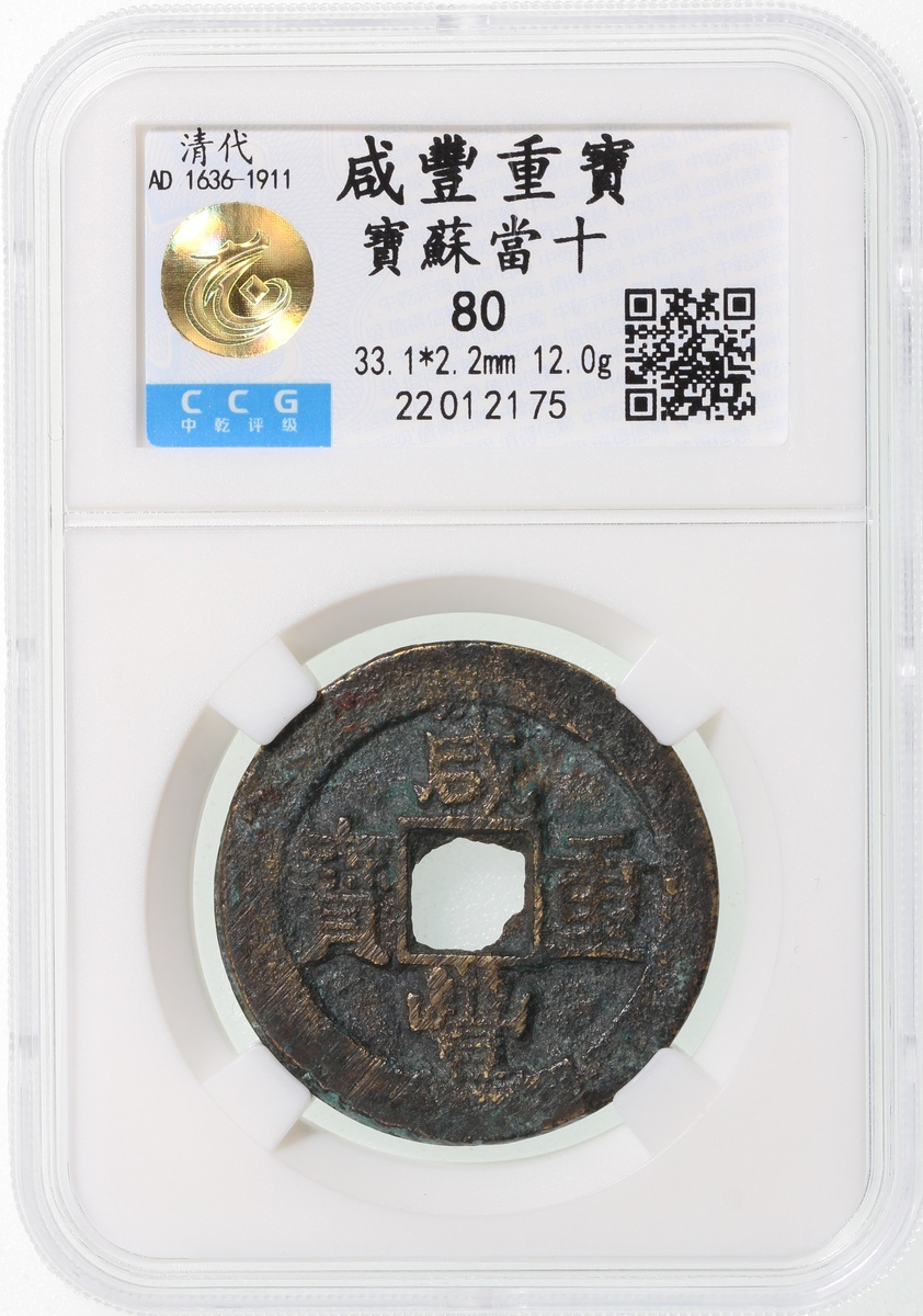 清代咸豐重寶寶蘇當十,中乾評級80,編號22012175