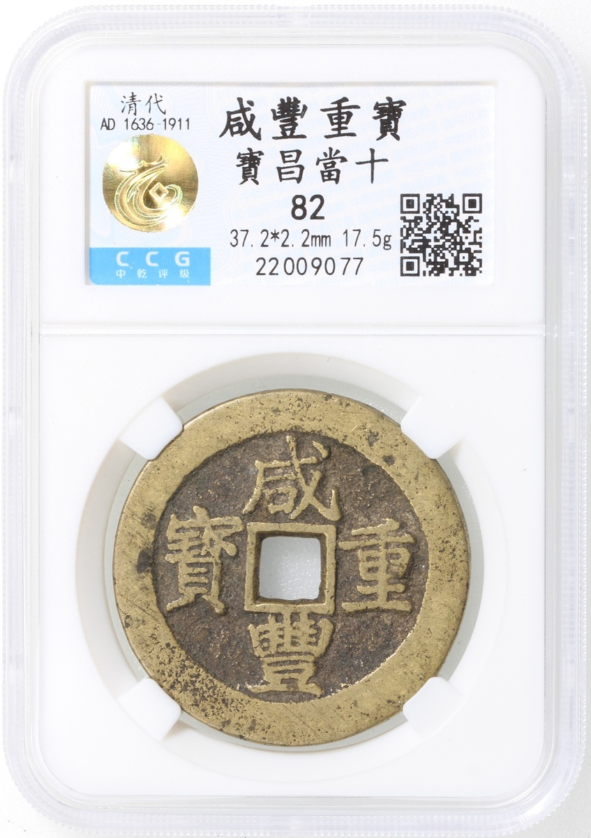 清代咸豐重寶寶昌當十,中乾評級82,編號22009077