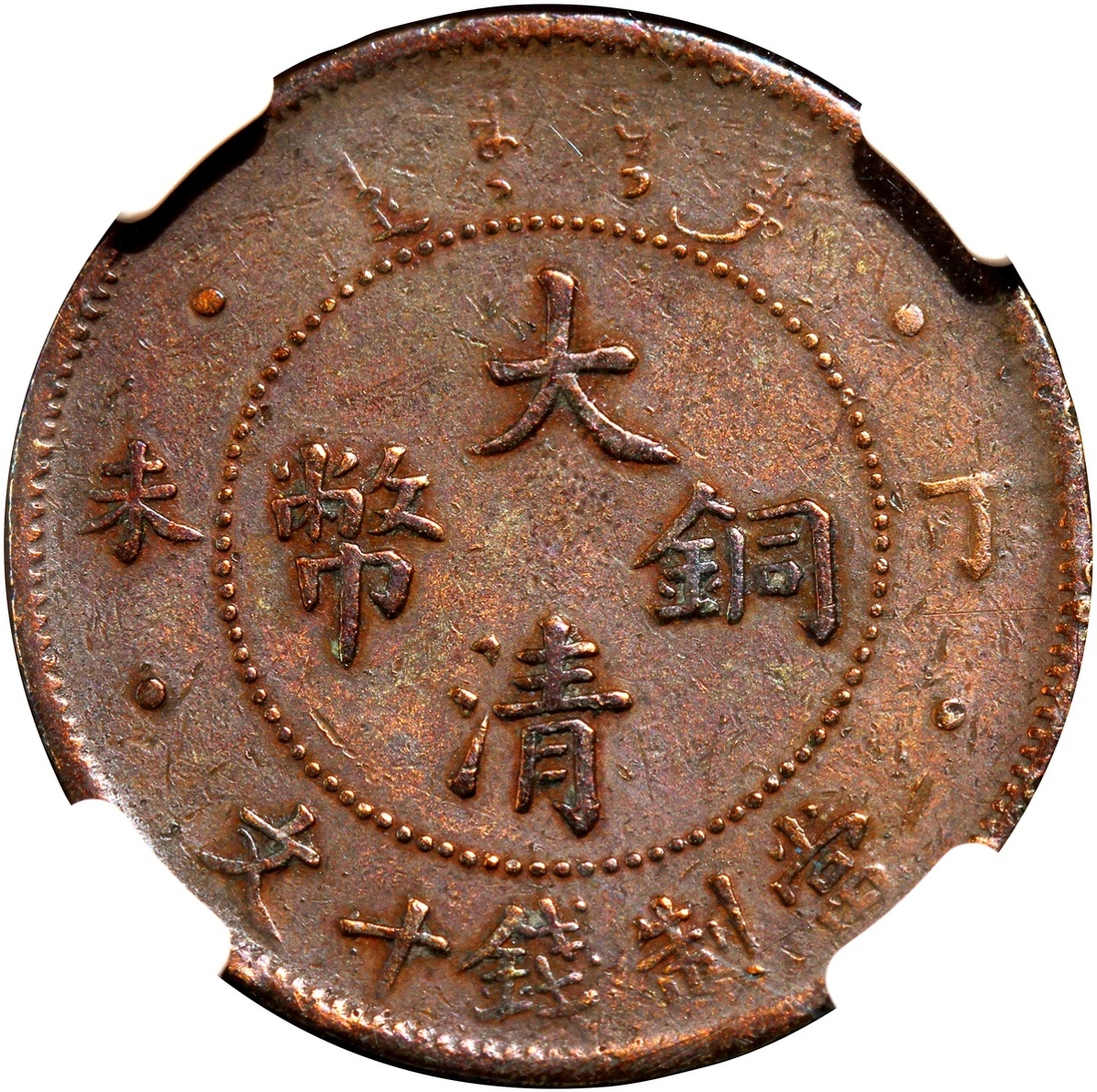 清代丁未大清銅幣十文四柱,NGC XF,拋光,編號4978632 055