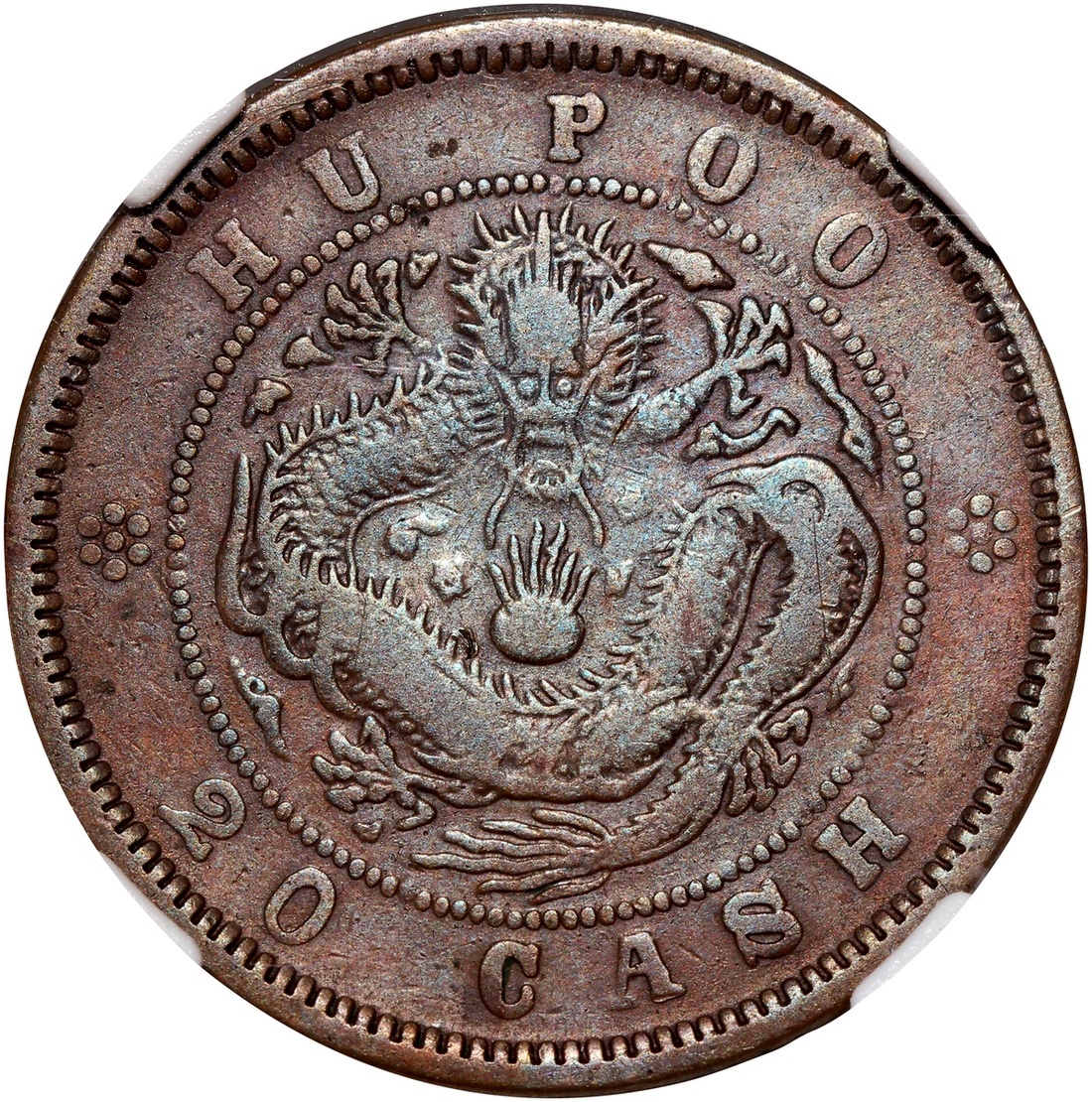 Qing Dynasty, copper 20 cash, 'Guangxu Yuan Bao', no date (1903-05), Hu Poo Mint, Zhong Qian XF45, #H52003111.