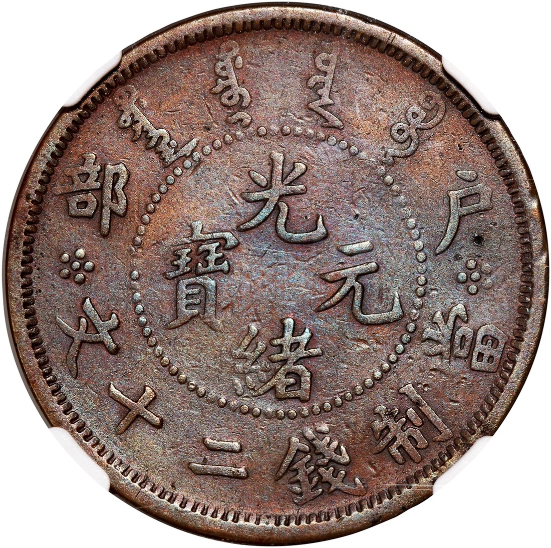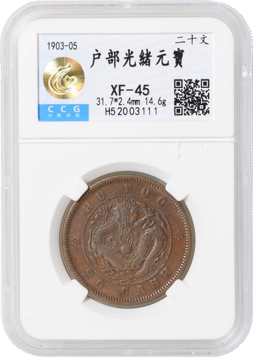 清代戶部光緒二十文,中乾評級XF45,編號H52003111