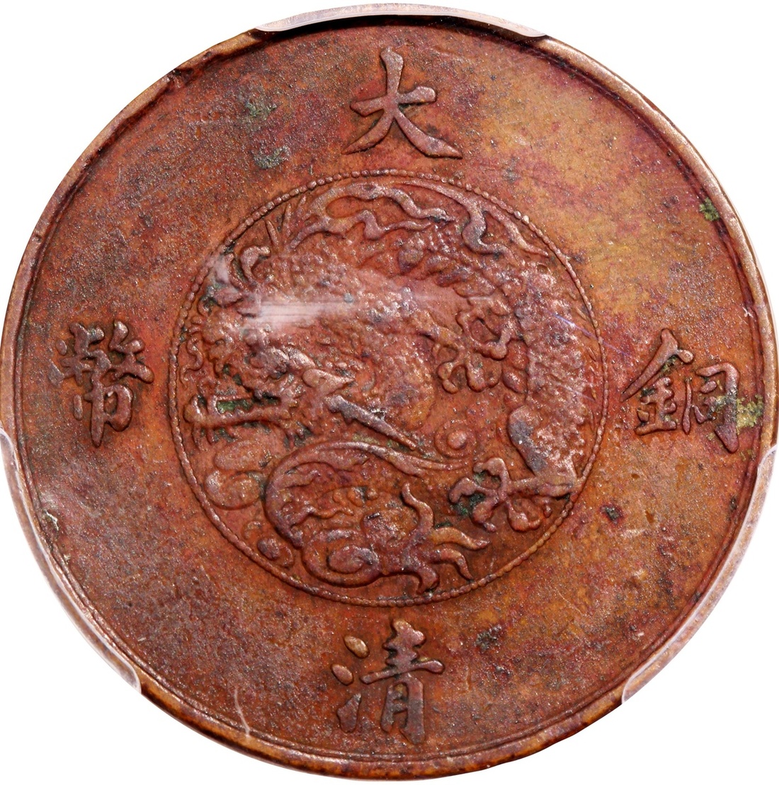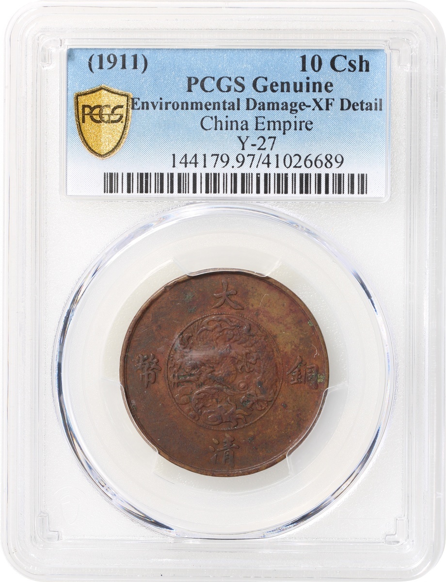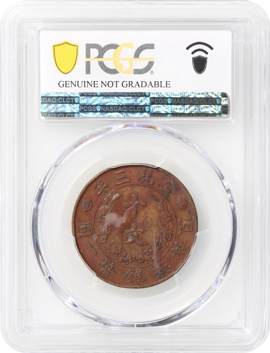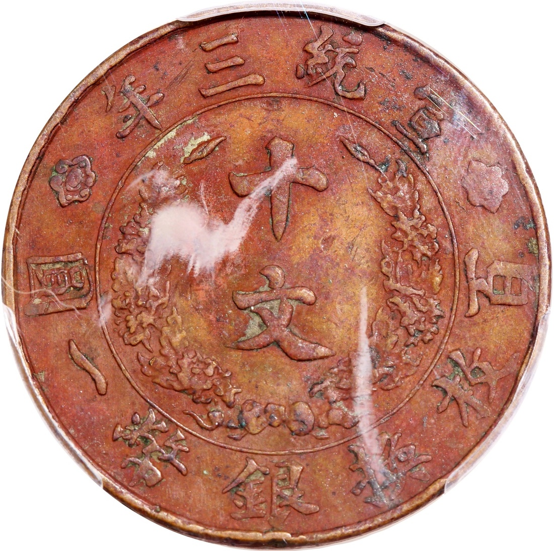 清代宣統三年大清銅幣十文,PCGS XF,有環境損害,編號41026689