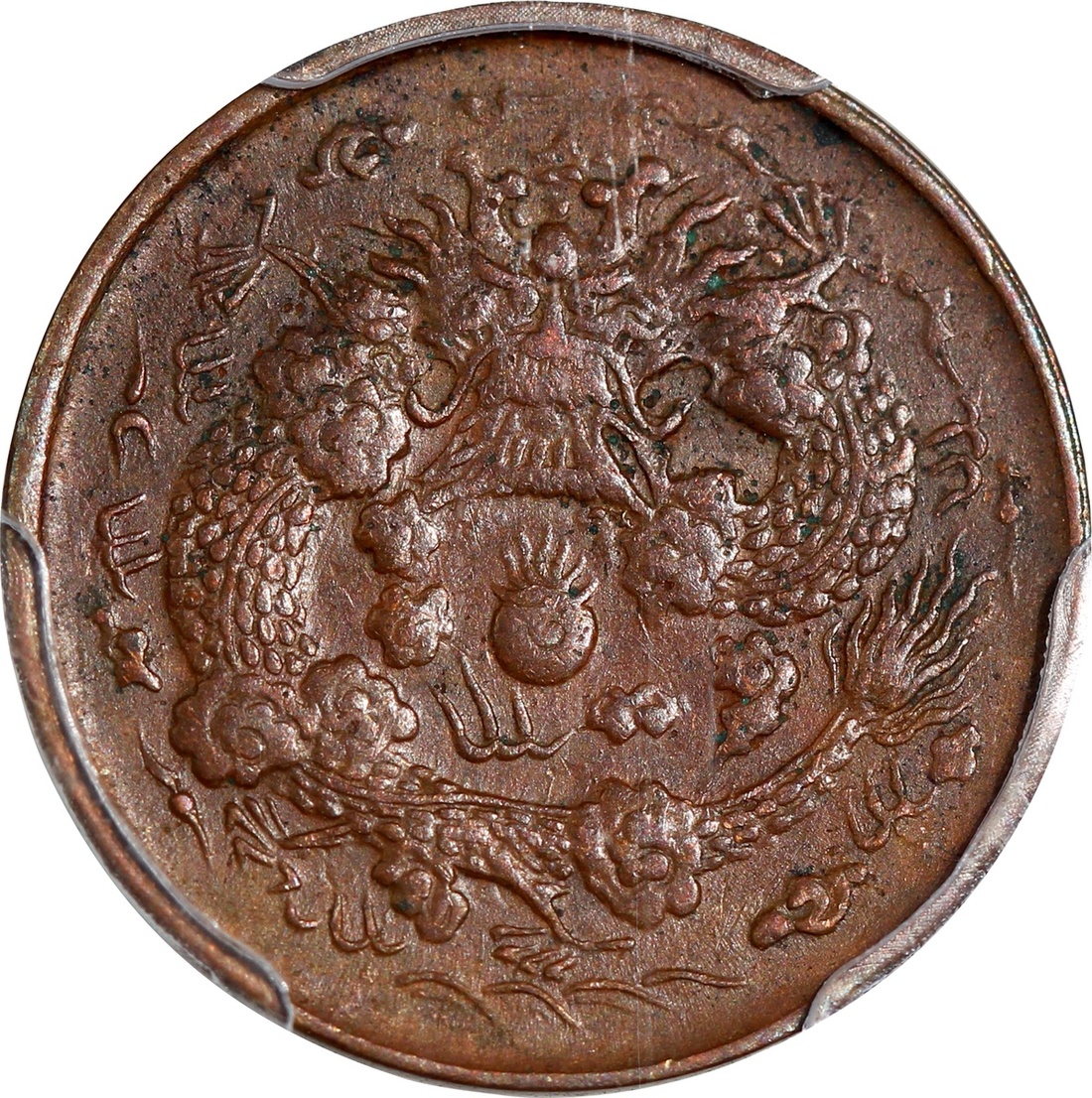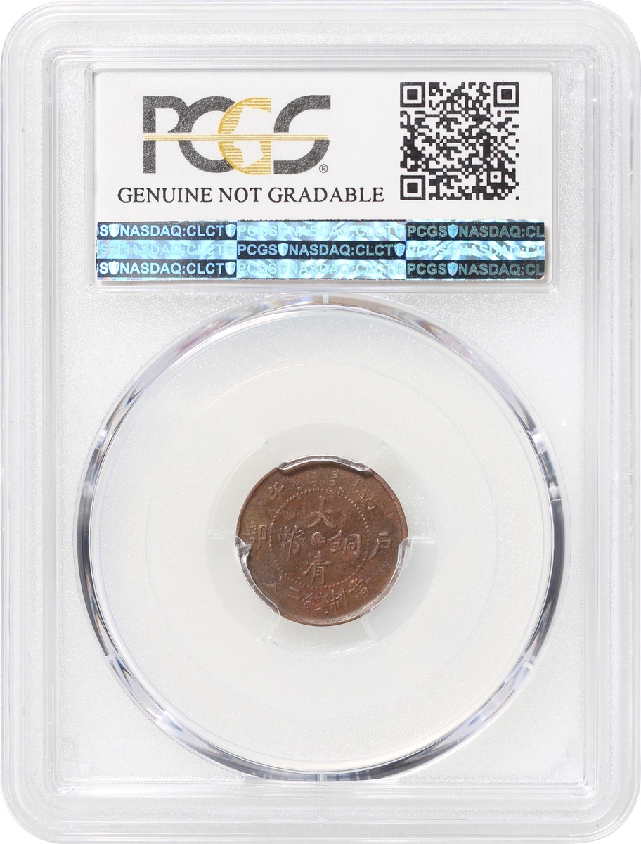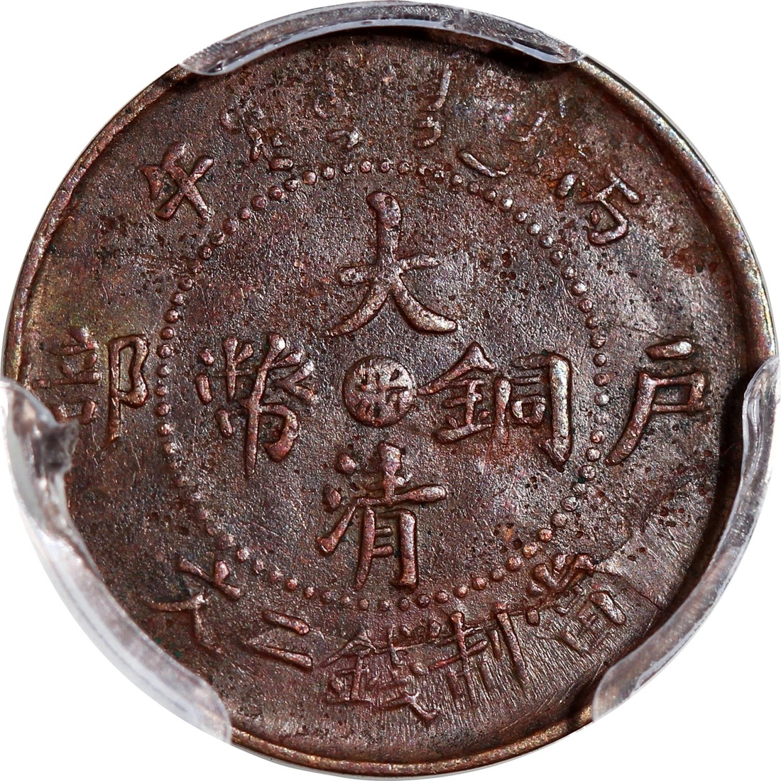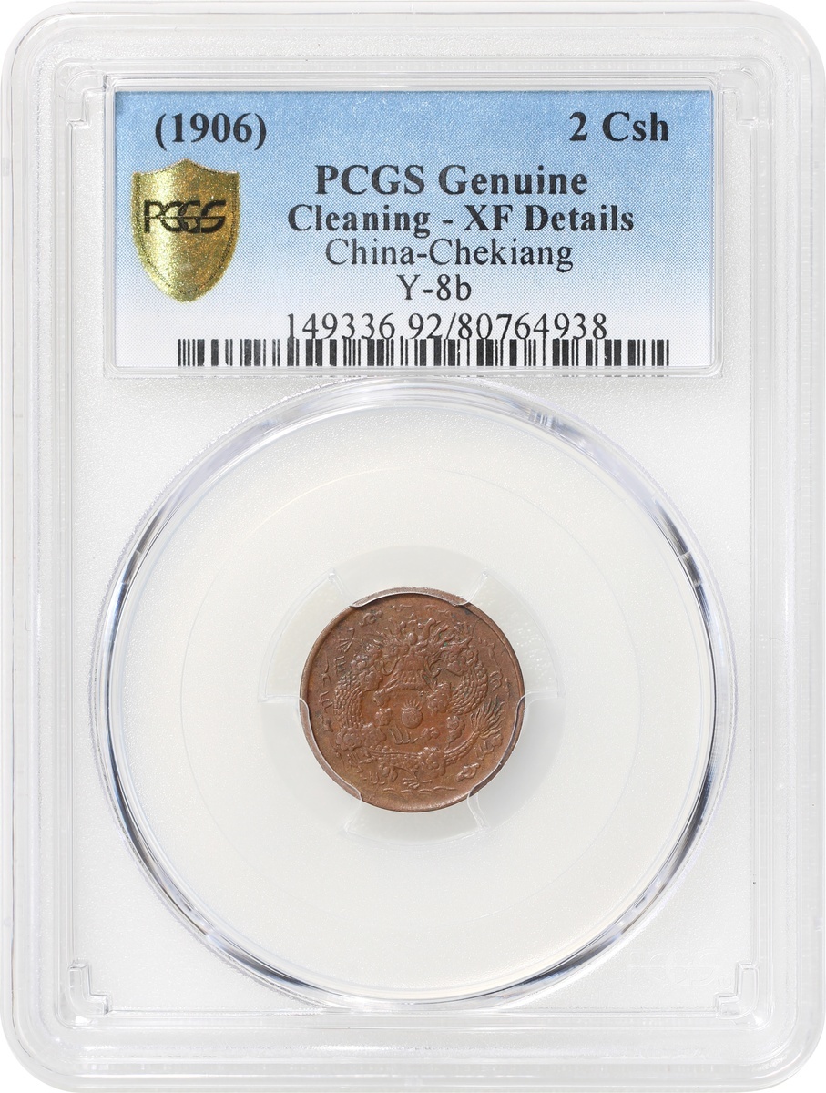 Republic of China, Chekiang Province, copper 2 cash, Bingwu year (1906), Hu Poo mint, 'Da Qing Tong Bi', 'Zhe' character at centre, (Y-8b), PCGS Genuine Cleaning - XF Details