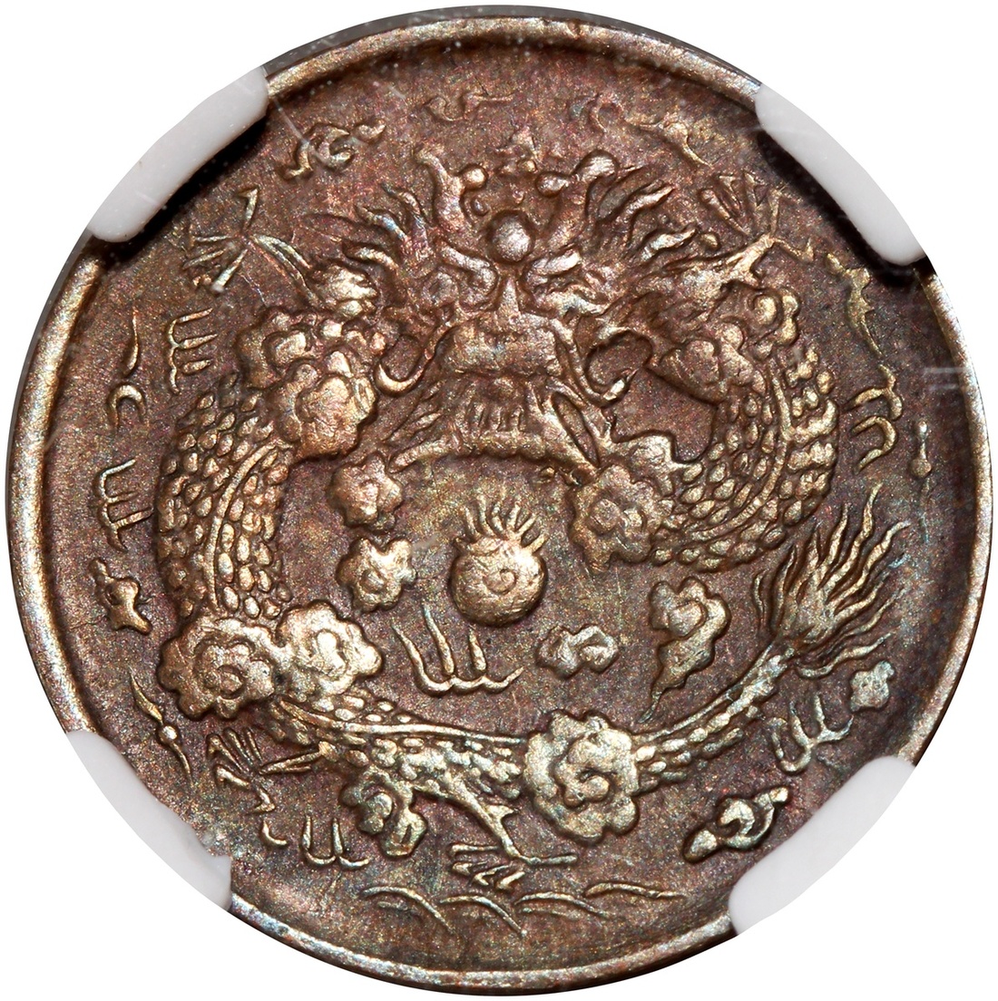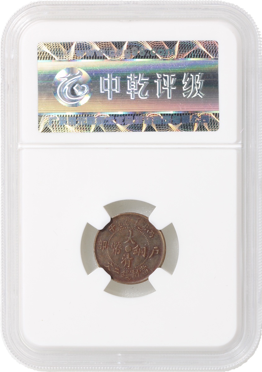 Qing Dynasty, Chekiang Province, copper 2 cash, Bingwu Year (1906), Hu Poo Mint, 'Che' character at centre, Zhong Qian AU55, #32008946.
