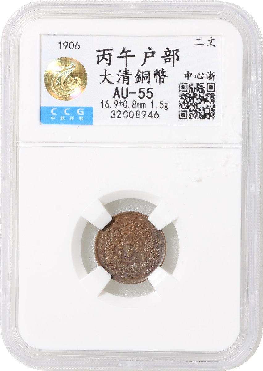 清代丙午中心浙二文,中乾評級AU55,編號32008946