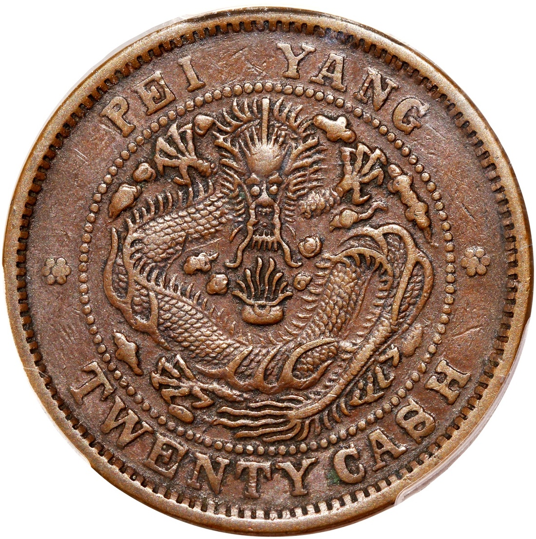 Qing Dynasty, Pei Yang, copper 20 cash, Guangxu Yuan Bao, PCGS XF45. #87001284