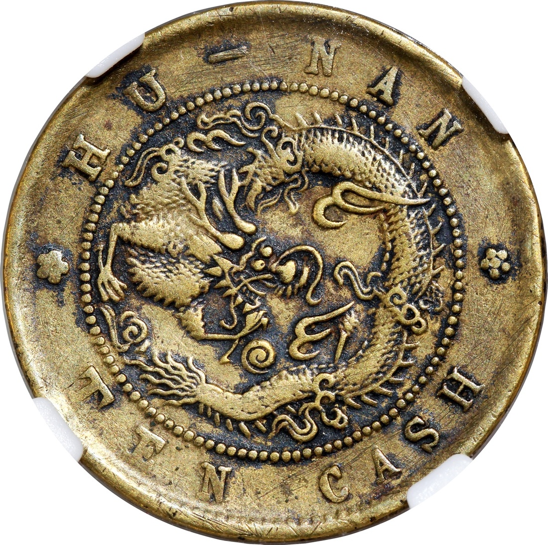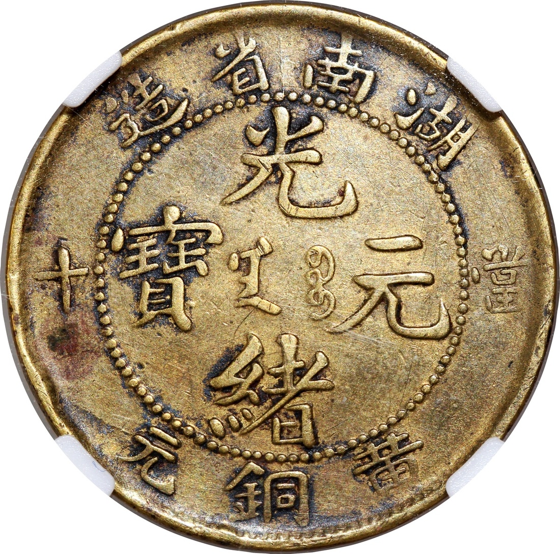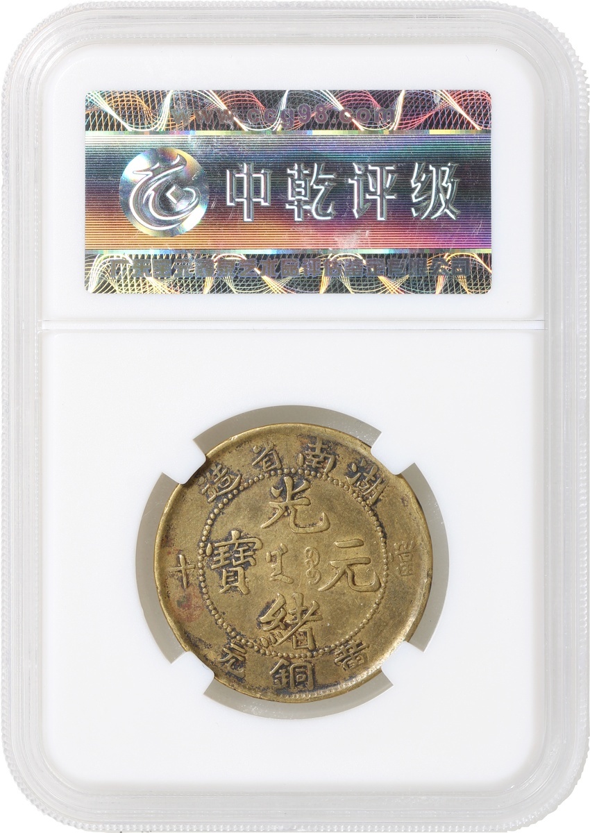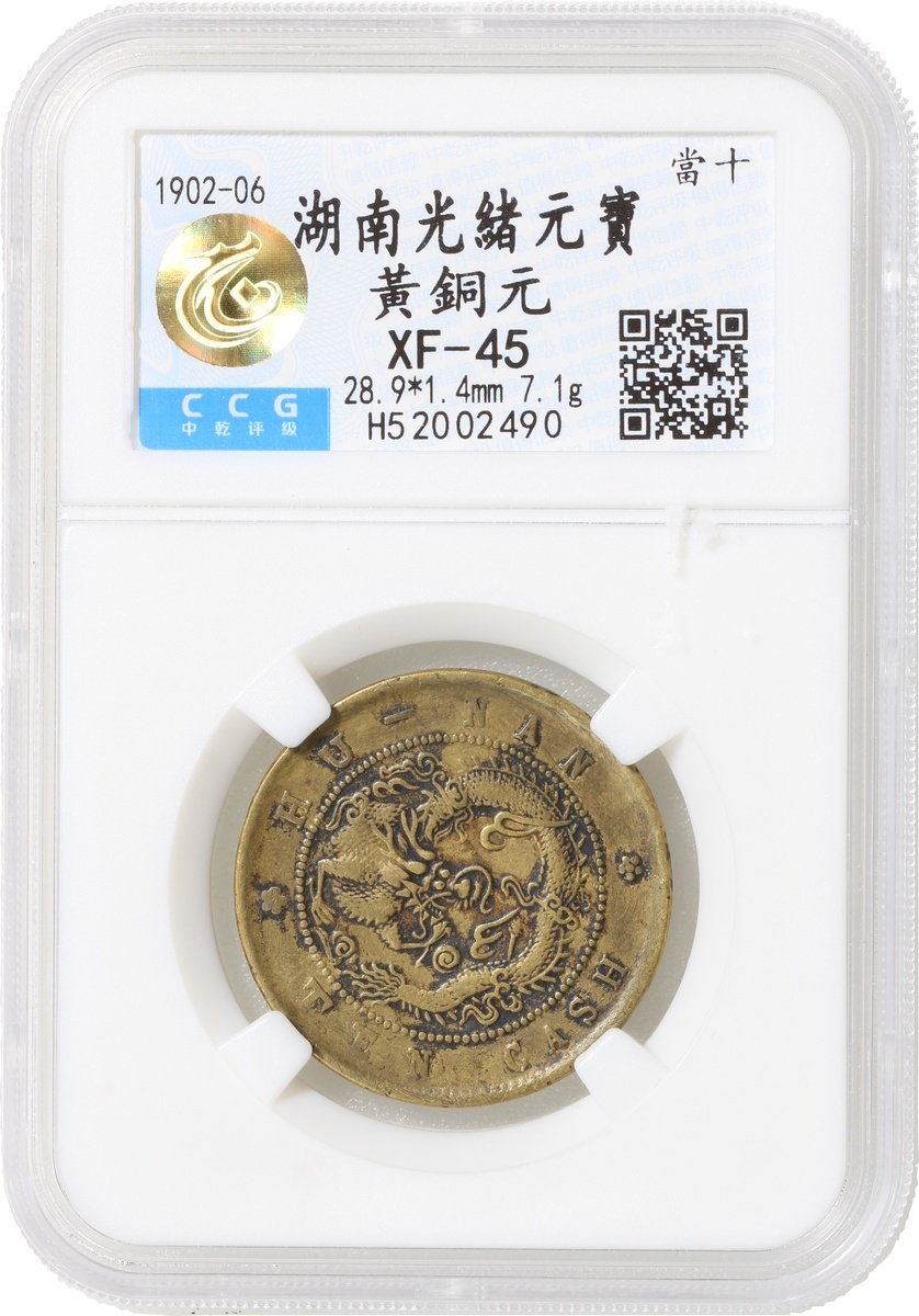 清代湖南光緒當十黃銅元,中乾評級XF45,編號H52002490