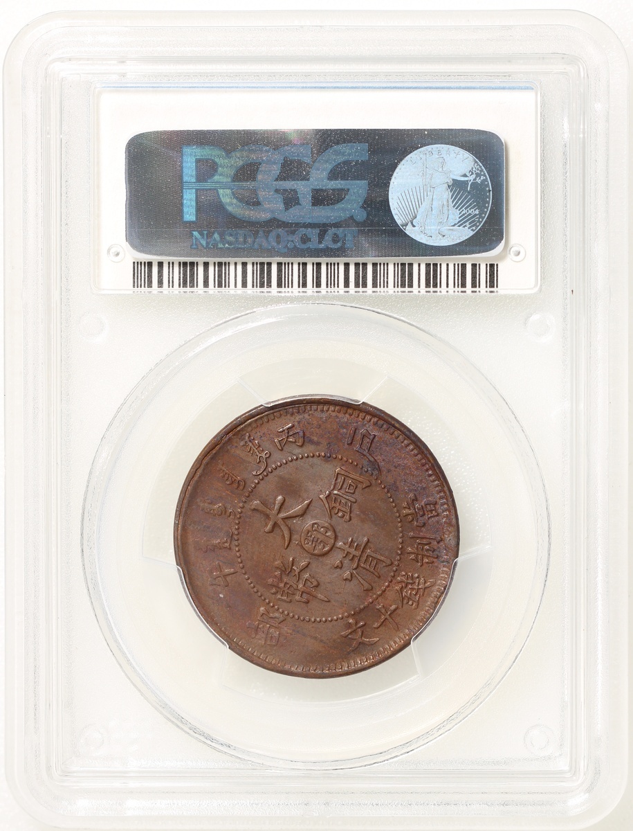 清代戶部丙午中心鄂十文,PCGS UNC,有環境損害