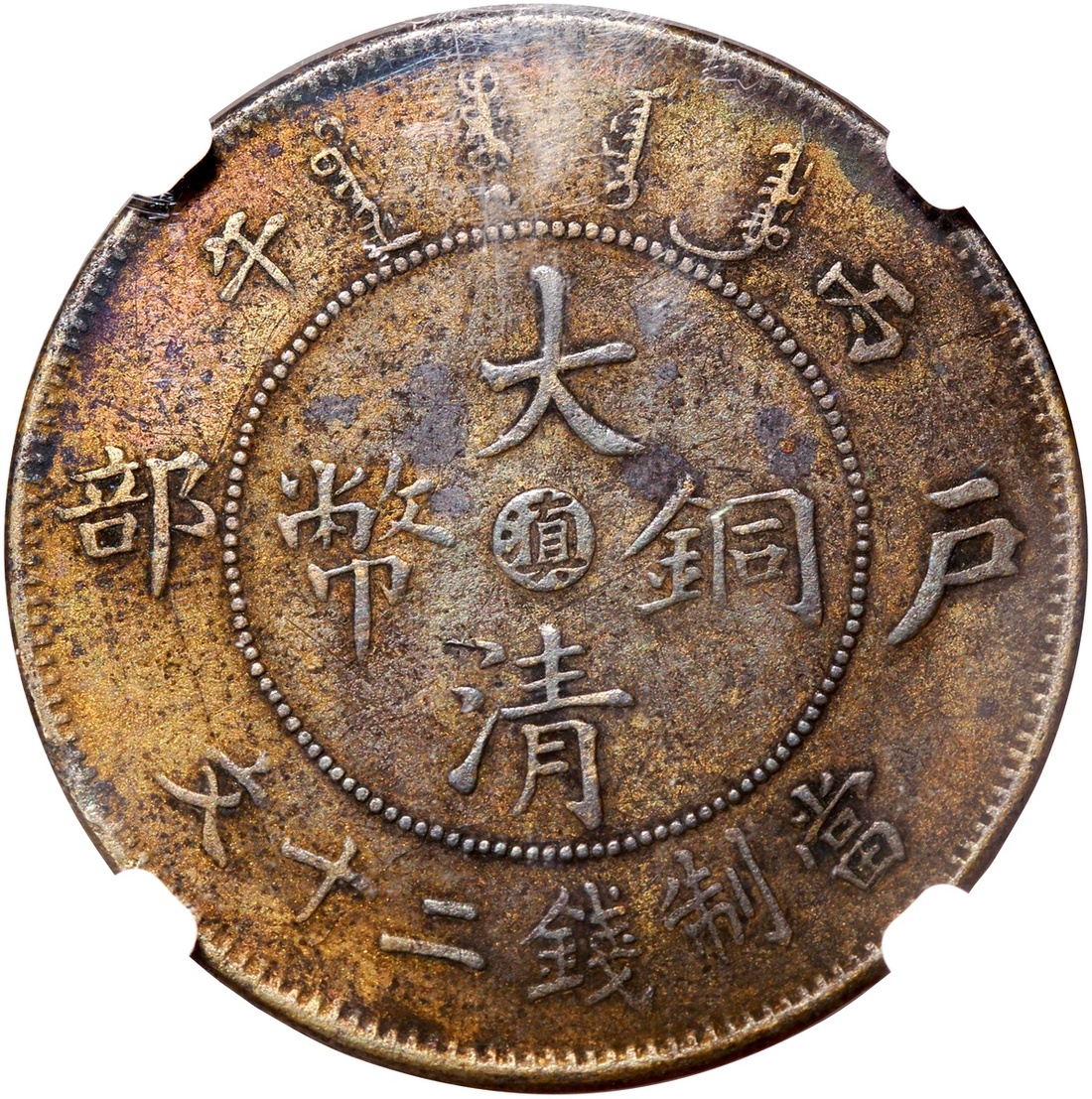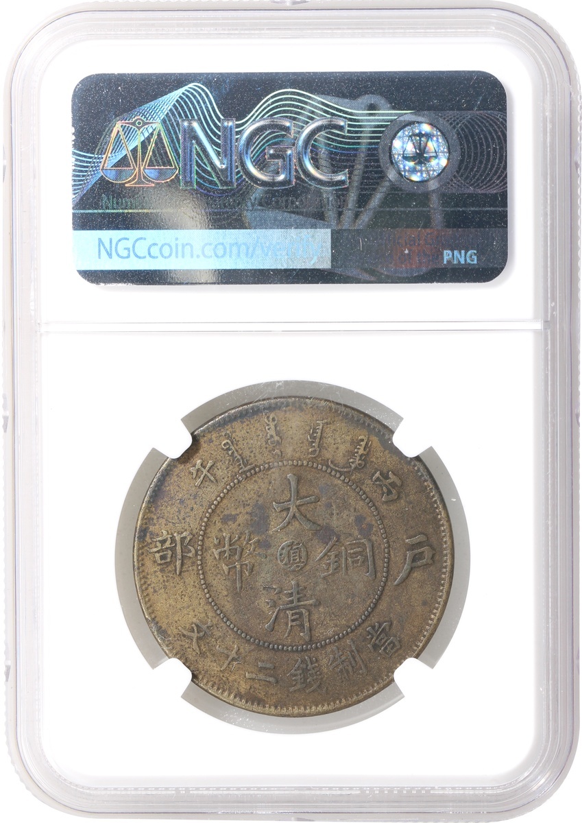 清代雲南戶部丙午中心滇二十文,NGC AU,有環境損害,編號4972628-001
