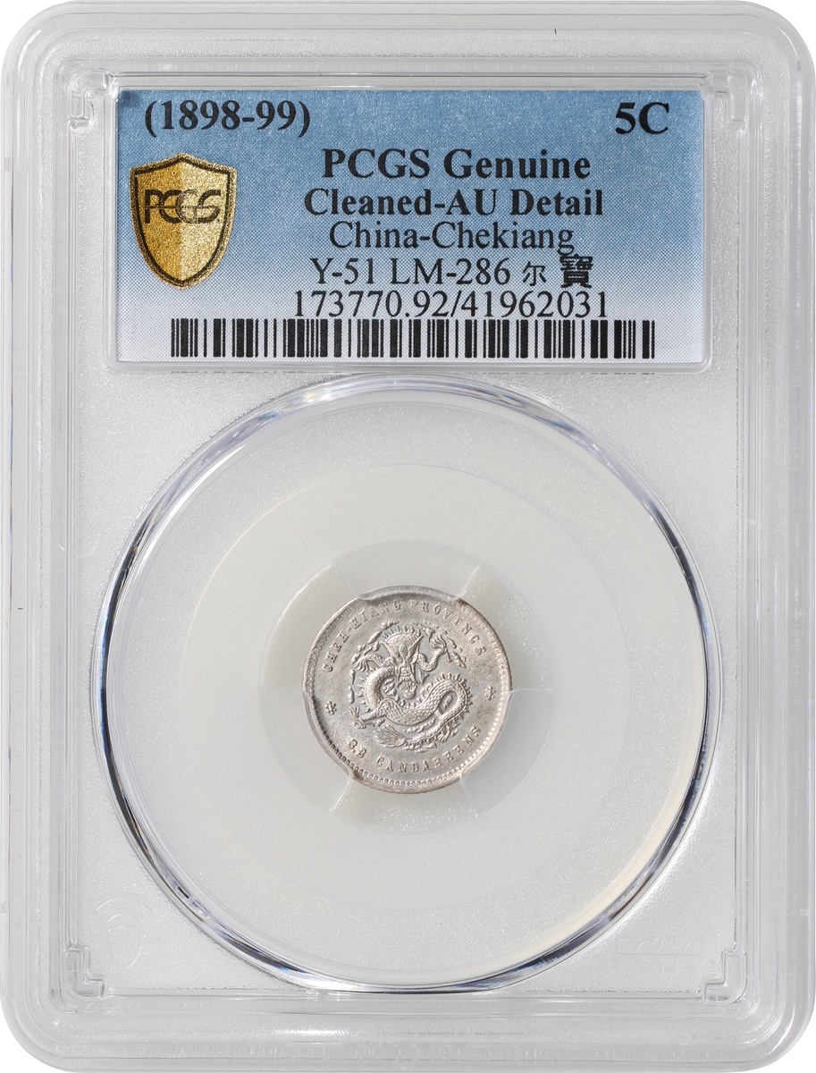 Chekiang Province, silver 5 cents, ND (1899-1908), 'Guangxu Yuan Bao', (Y-51, LM-286), PCGS Genuine Cleaned - AU Detail