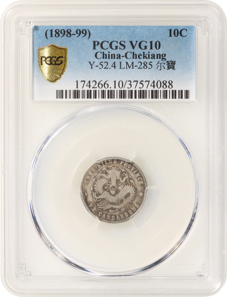 清代浙江魏碑體七分二釐,PCGS VG10,及清代浙江魏碑體一錢四分四釐,PCGS VF,環境損害,編號分別37574088及37573932