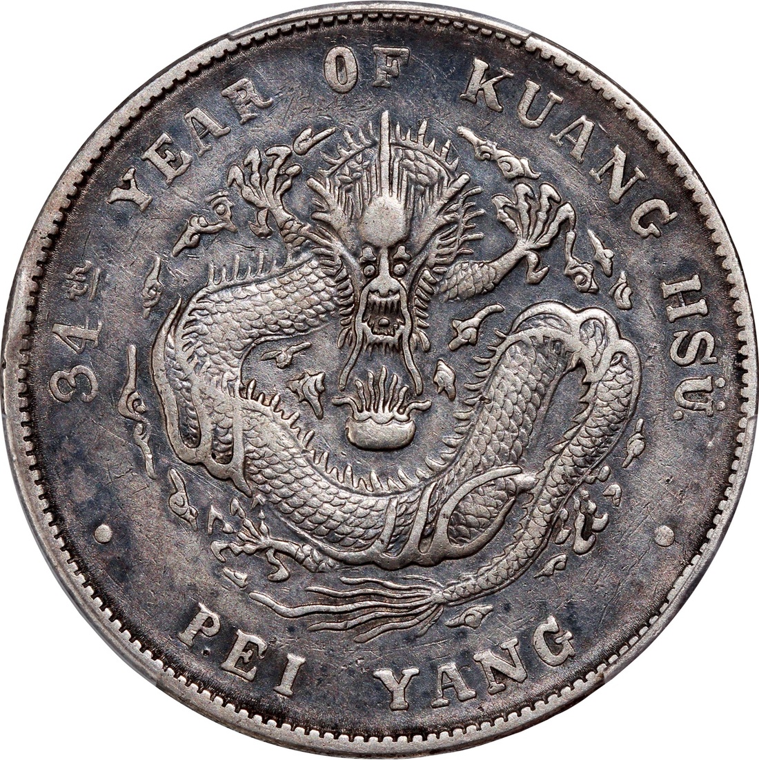 Chihli Province, Pei Yang, silver $1, Guangxu Year 34 (1908), 'Guangxu Yuan Bao', cloud connected variety,