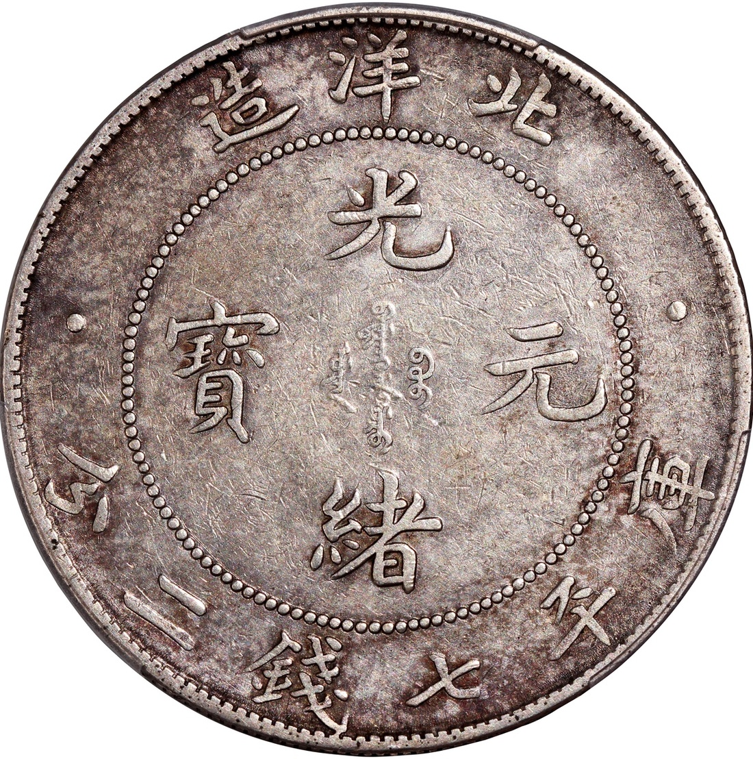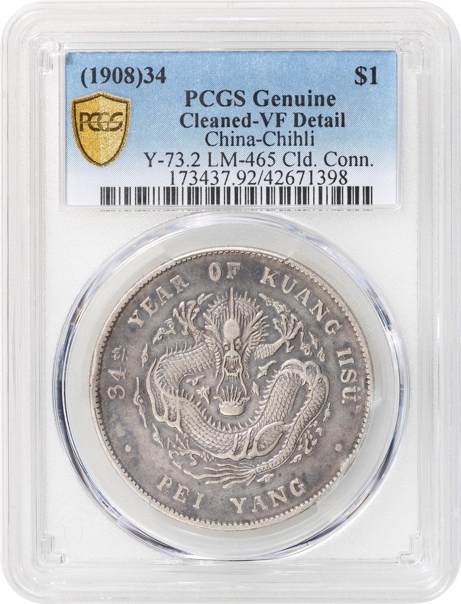 光緒三十四年北洋造七錢二分,連雲版,PCGS VF,有清洗,編號42671398