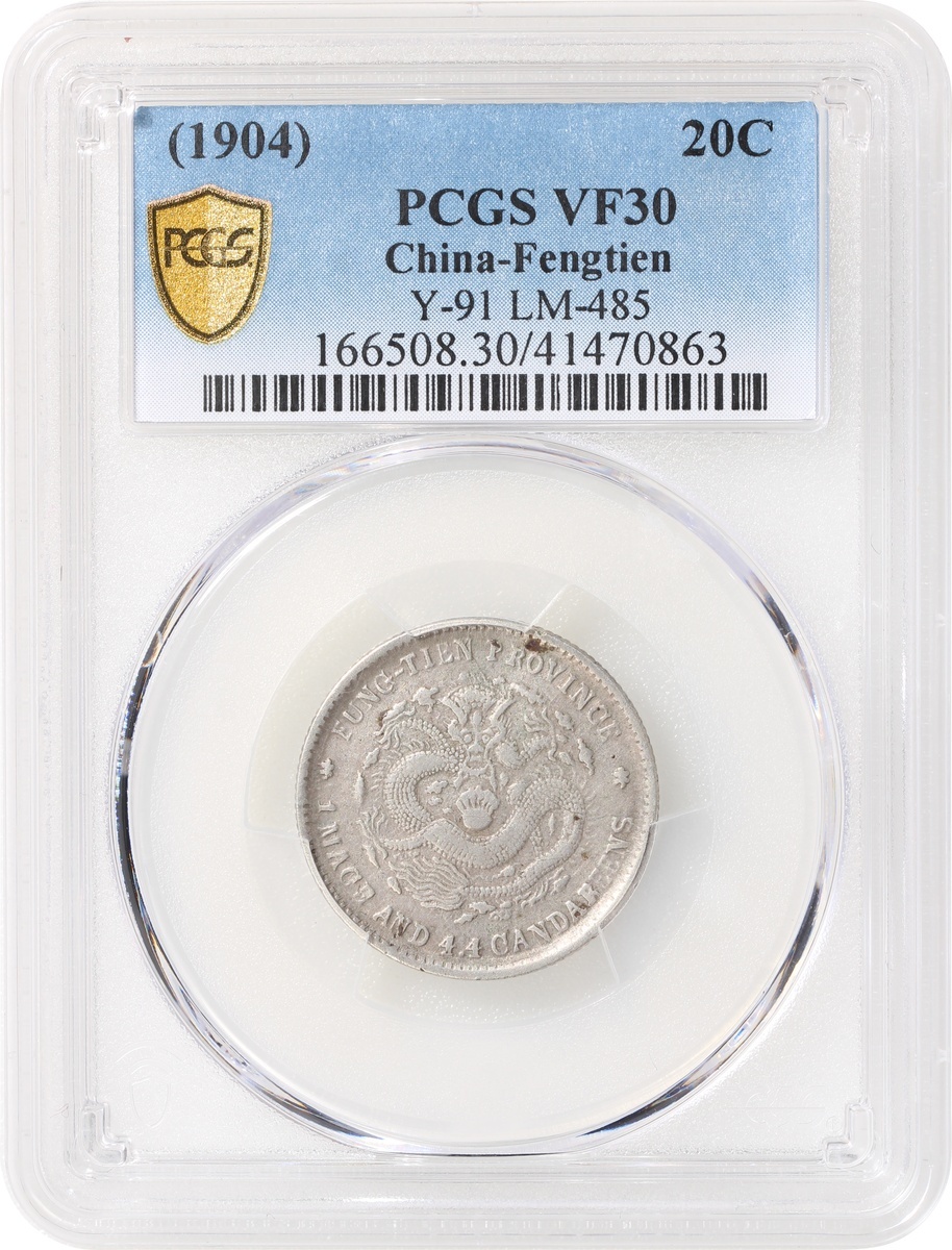 Fengtien Province, silver 20 cents, JiachenYear (1904), Guangxu Yuan Bao, (Y-91, LM-485), PCGS VF30, #41470863.