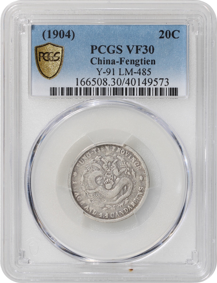 Fengtien Province, silver 20 cents, Jiachen Year (1904), 'Guangxu Yuan Bao', (Y-91, LM-485), PCGS VF30