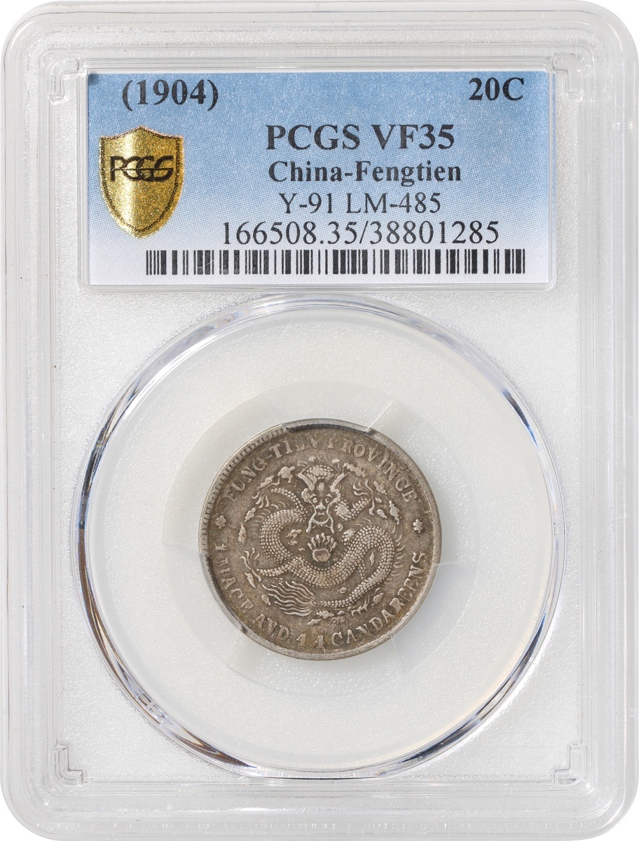 Fengtien Province, silver 20 cents, Jiachen (1904), 'Guangxu Yuan Bao', (Y-91, LM-485), PCGS VF35, #38801285.