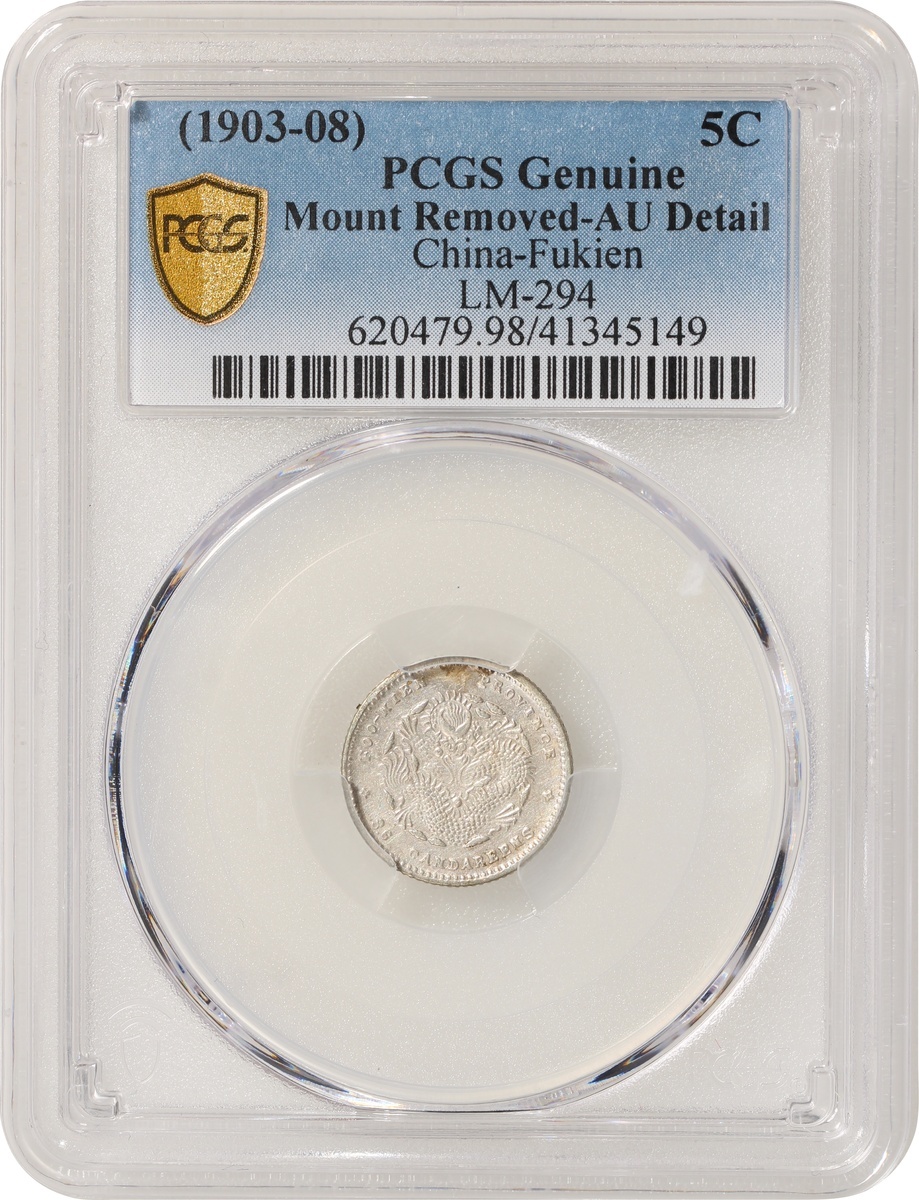 Fukien Province, silver 5 cents, ND (1903-08), Guangxu Yuan Bao, (LM-294), PCGS Genuine Mount Removed-AU Detail, #41345149