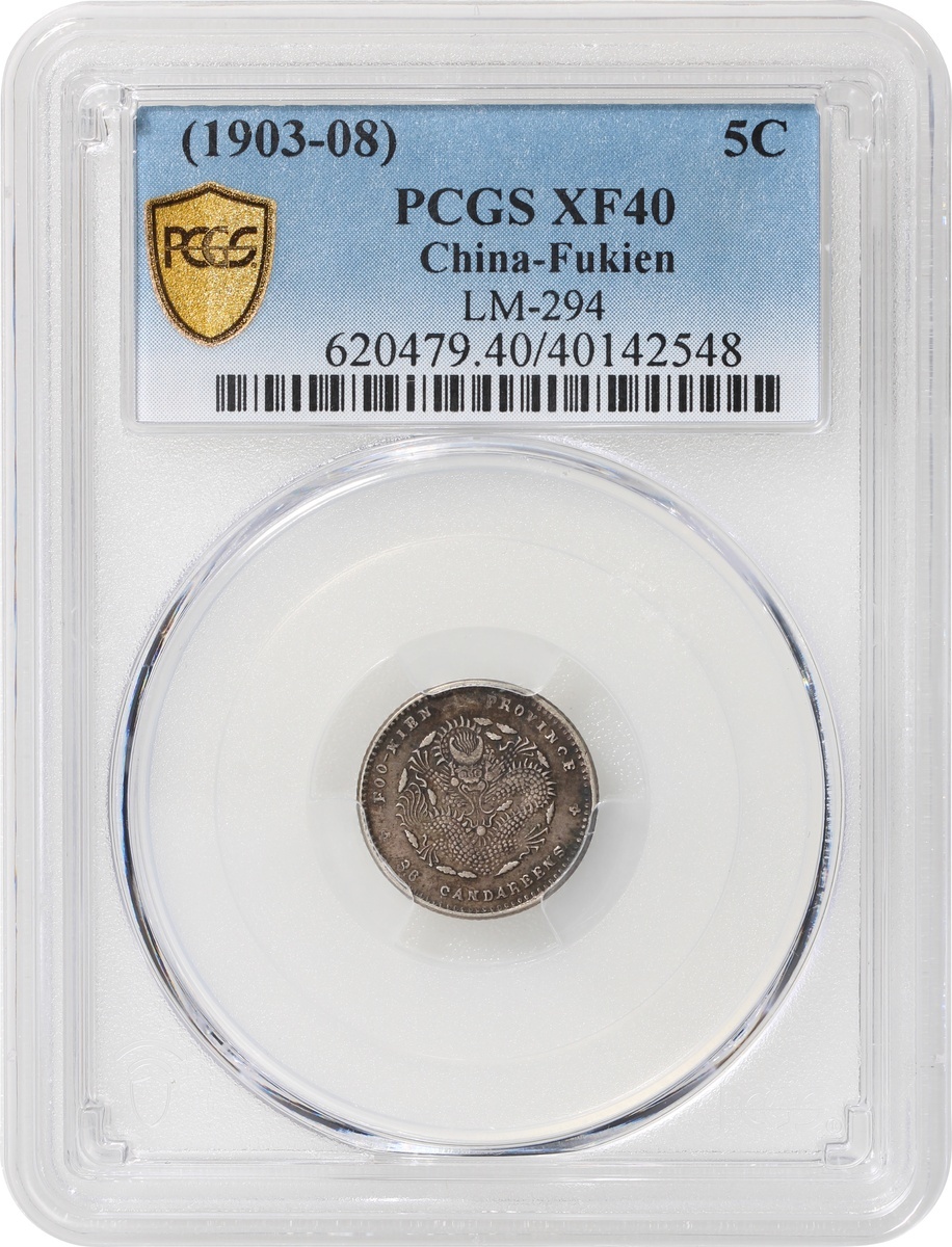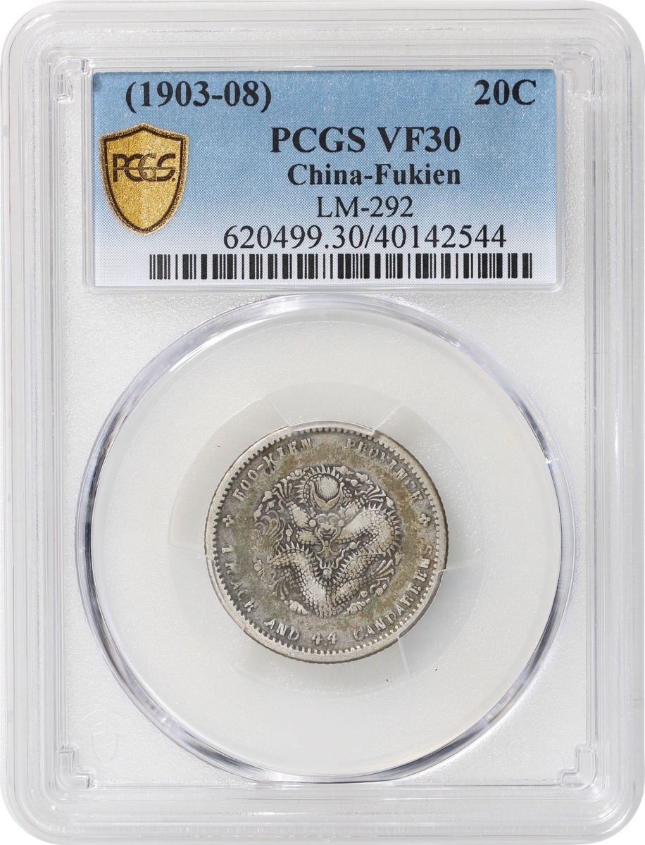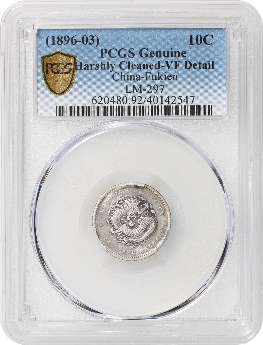 Fukien Province, a group of 3x silver coins, ‘Guangxu Yuan Bao', Fukien Mint, 10 cents, 1896-03, 5 cents and 20 cents, 1903-08, (LM-297, LM-292 and LM-294), PCGS Genuine VF Detail (Harshly Cleaned), XF40, and VF30 respectively (3), #40142547, #40142548 and #40142544 (3).