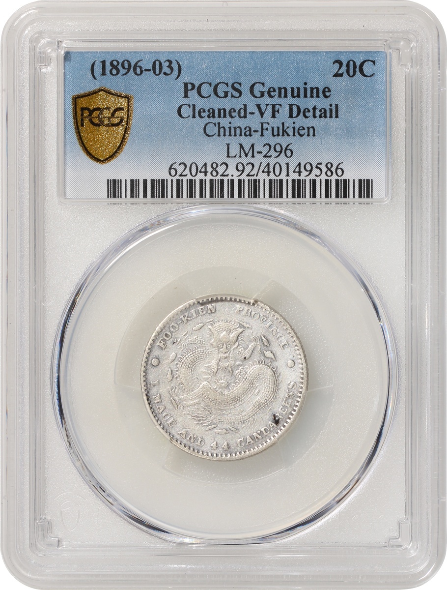 Fukien Province, silver 20 cents, ND (1896-1903), Fukien Mint, 'Guangxu Yuan Bao', (LM-296), PCGS Genuine Cleaned - VF Detail