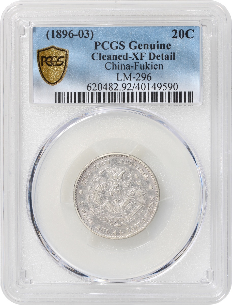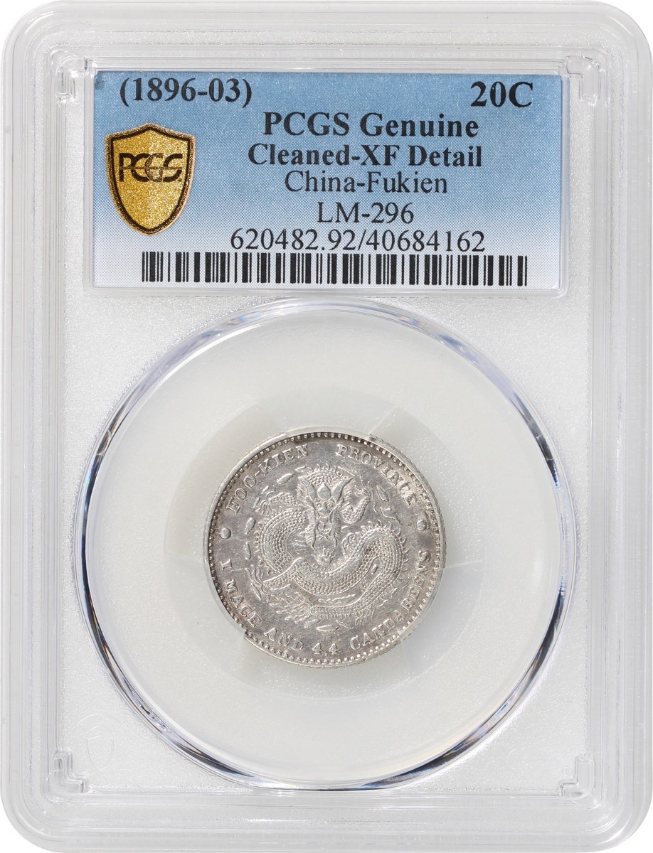 Fukien Province, a pair of silver 20 cents, ND (1896-1903), Fukien Mint, 'Guangxu Yuan Bao', (LM-296), both graded PCGS Genuine Cleaned - XF Detail (2)