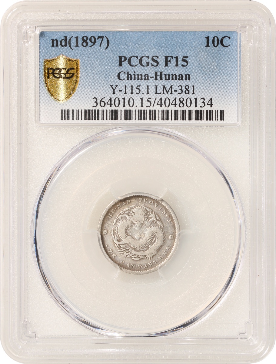 Hunan Province, a pair of silver 10 cents, ND (1987) and ND (1898), 'Guangxu Yuan Bao', the frist graded PCGS F15, the second graded Zhong Qian VF (2)