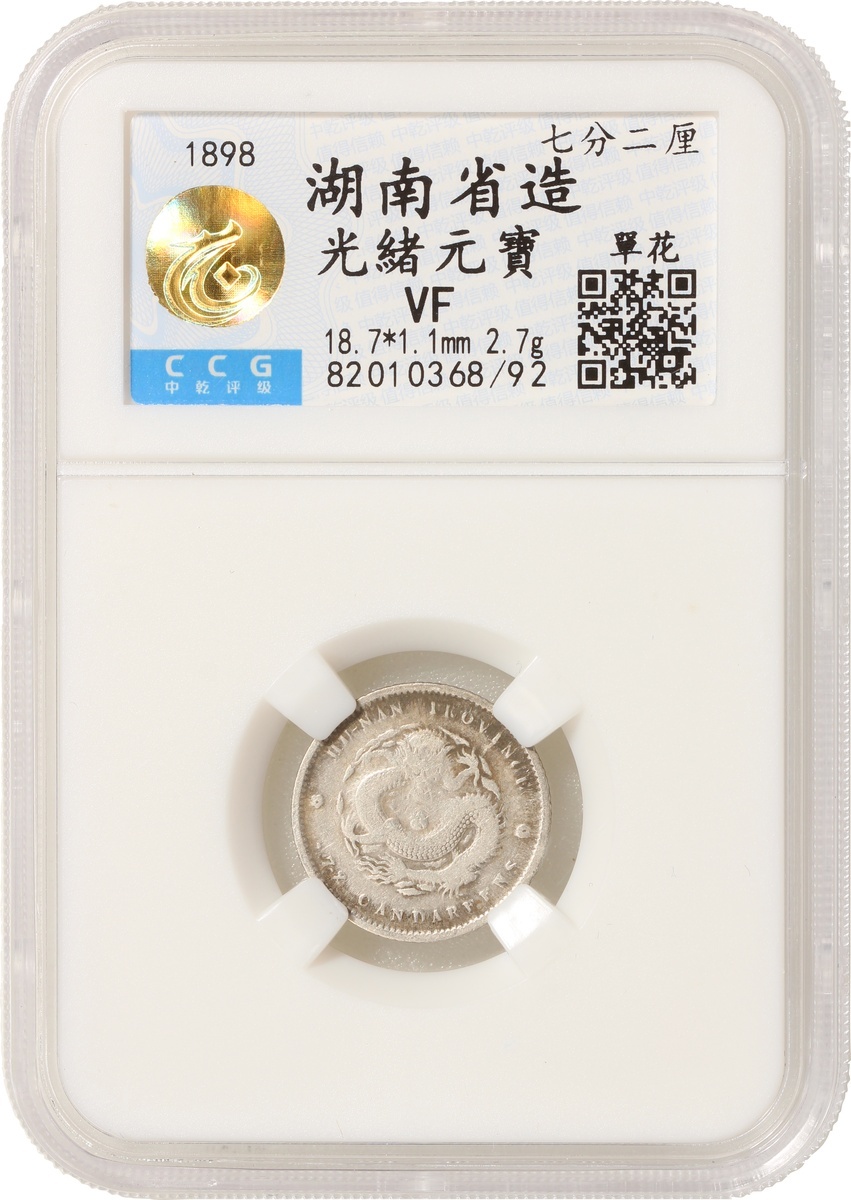 清代湖南光緒七分二釐,一組2枚,分別經評PCGS F15,中乾評級VF