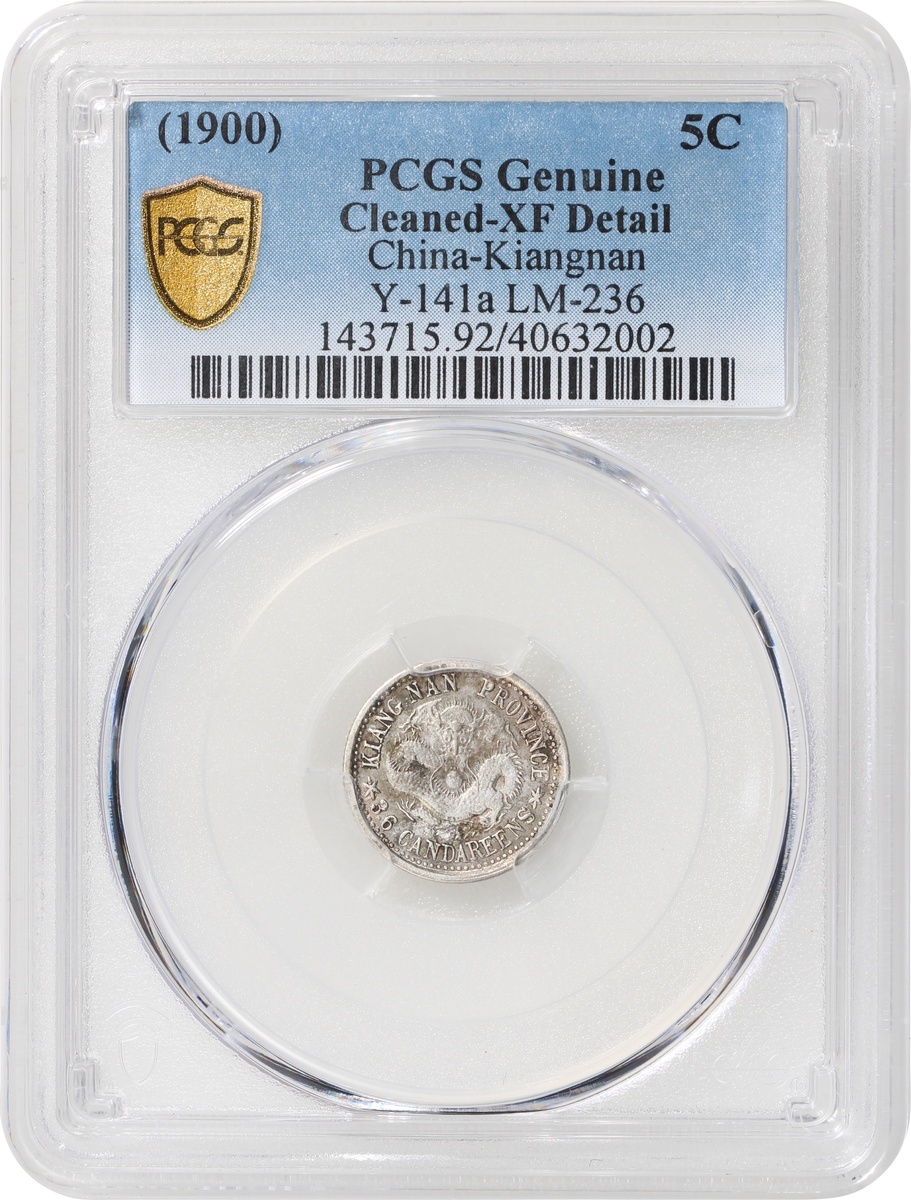 Kiangnan Province, silver 5 cents, Year Gengzi (1900), 'Guangxu Yuan Bao', (Y-141a, LM-236), PCGS Genuine Cleaned-XF Detail, #40632002.