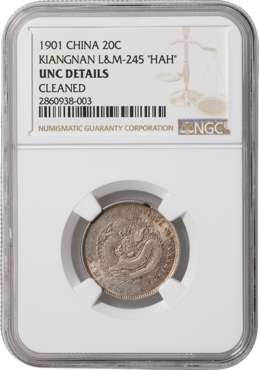 Kiangnan Province, silver 20 cents, Xinchou Year (1901), 'Guangxu Yuan Bao', with 'HAH' characters,