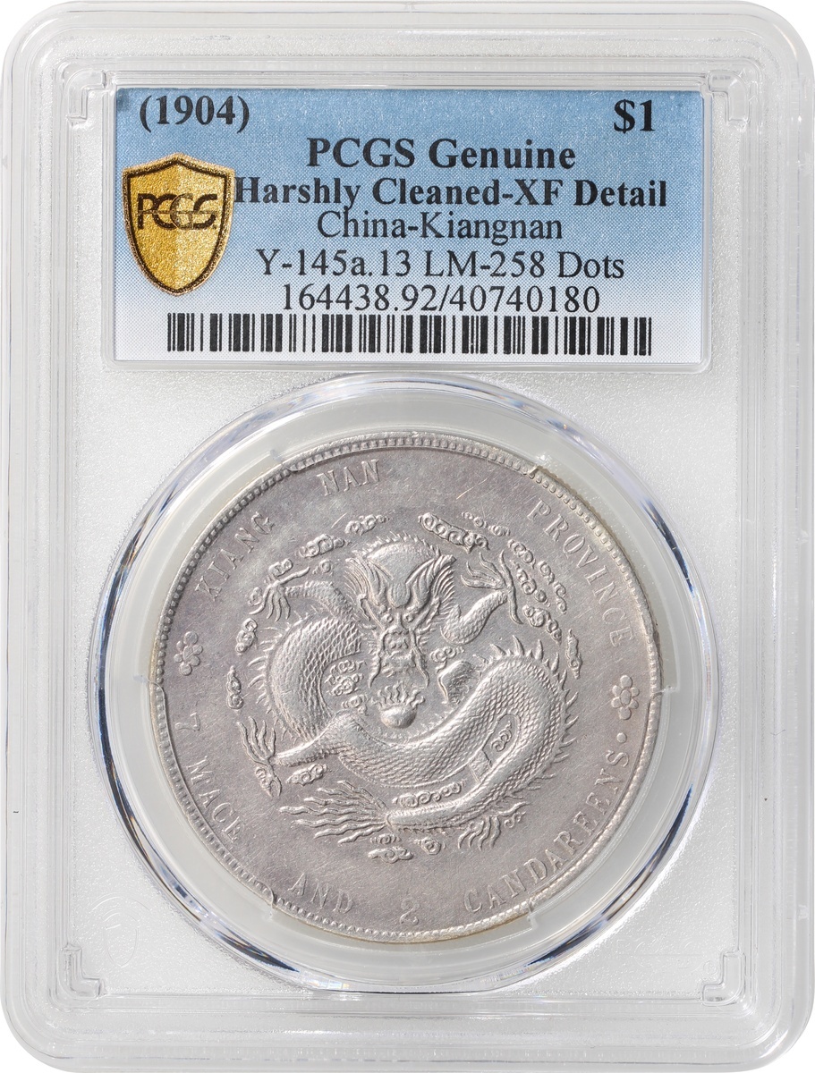 清代江南甲辰七錢二分,無點版,PCGS XF,嚴重清洗,編號40740180