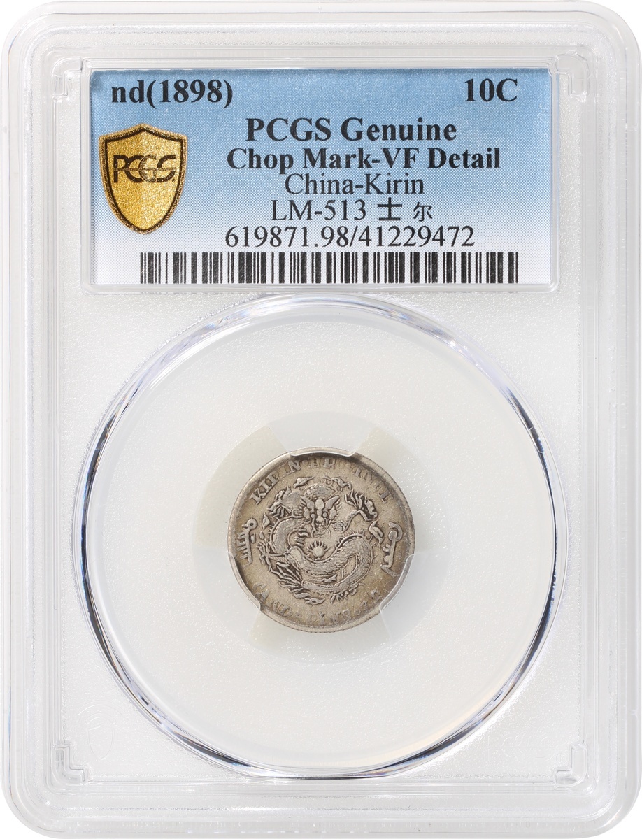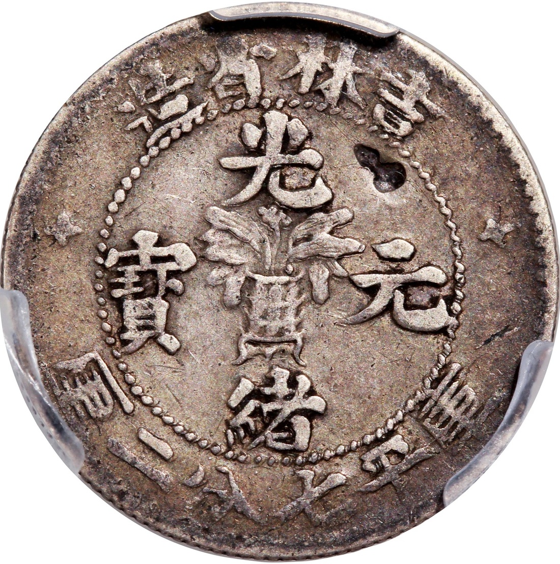 Kirin Province, silver 10 cents, Guangxu Yuan Bao, flower basket at centre on reverse, (LM-513), PCGS VF Detail, chop mark. #41229472