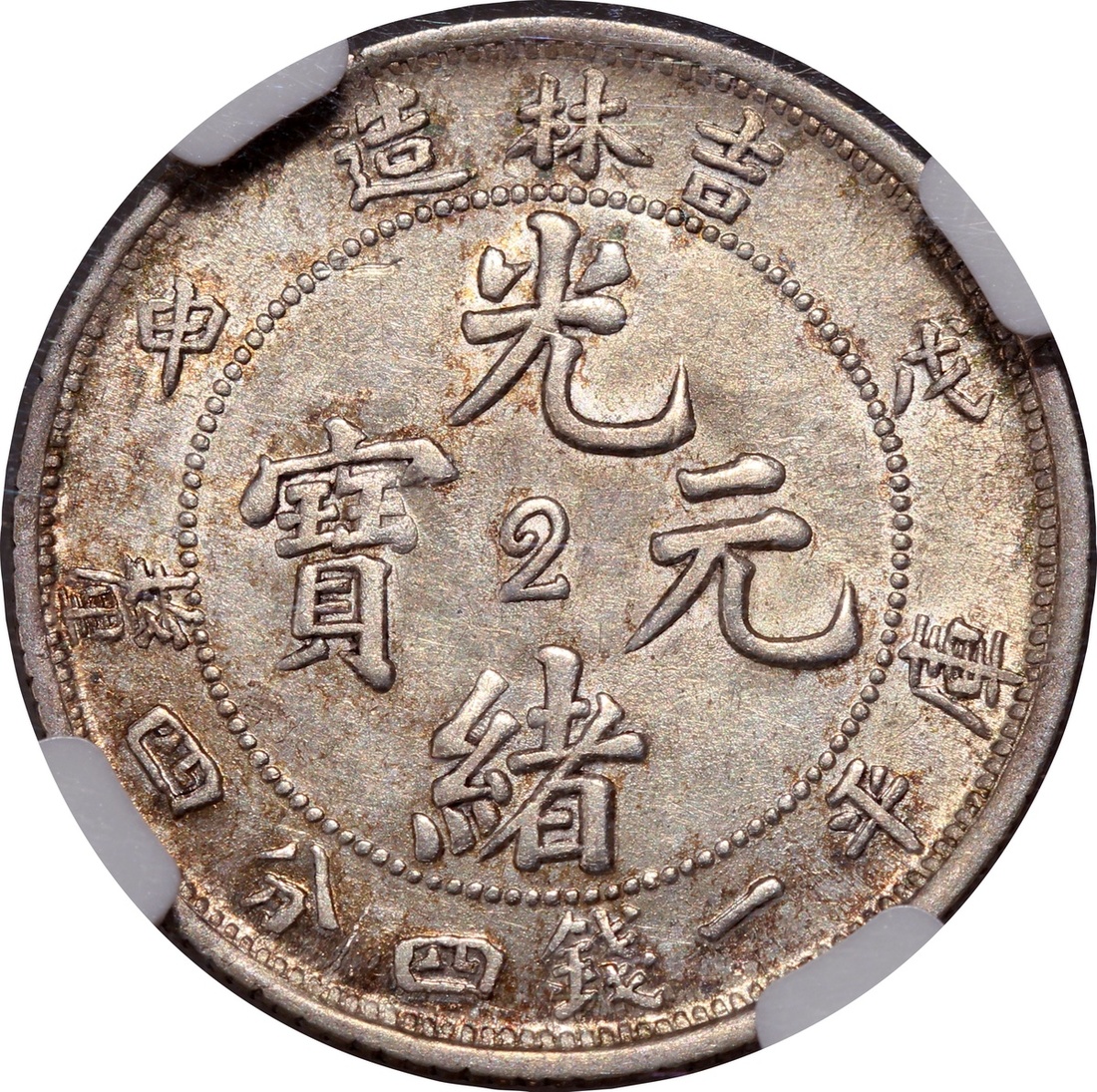 清代吉林戊申一錢四分四釐,中心2,NGC XF40,編號3300254-003