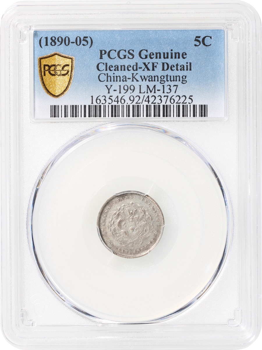 Kwangtung Province, silver 5 cents, ND (1890-1905), 'Guangxu Yuan Bao', (Y-199, LM-137), PCGS Genuine Cleaned - XF Detail, #42376225.