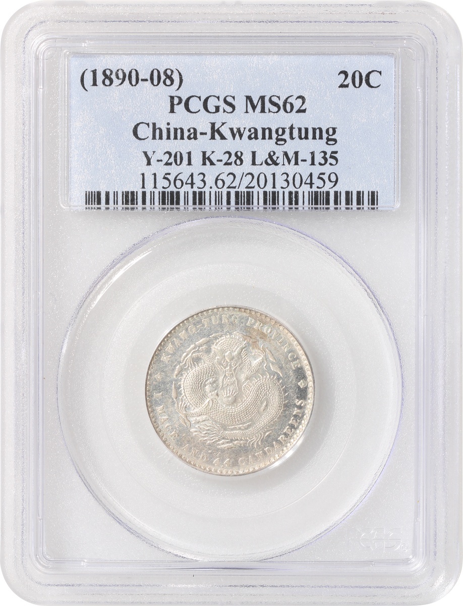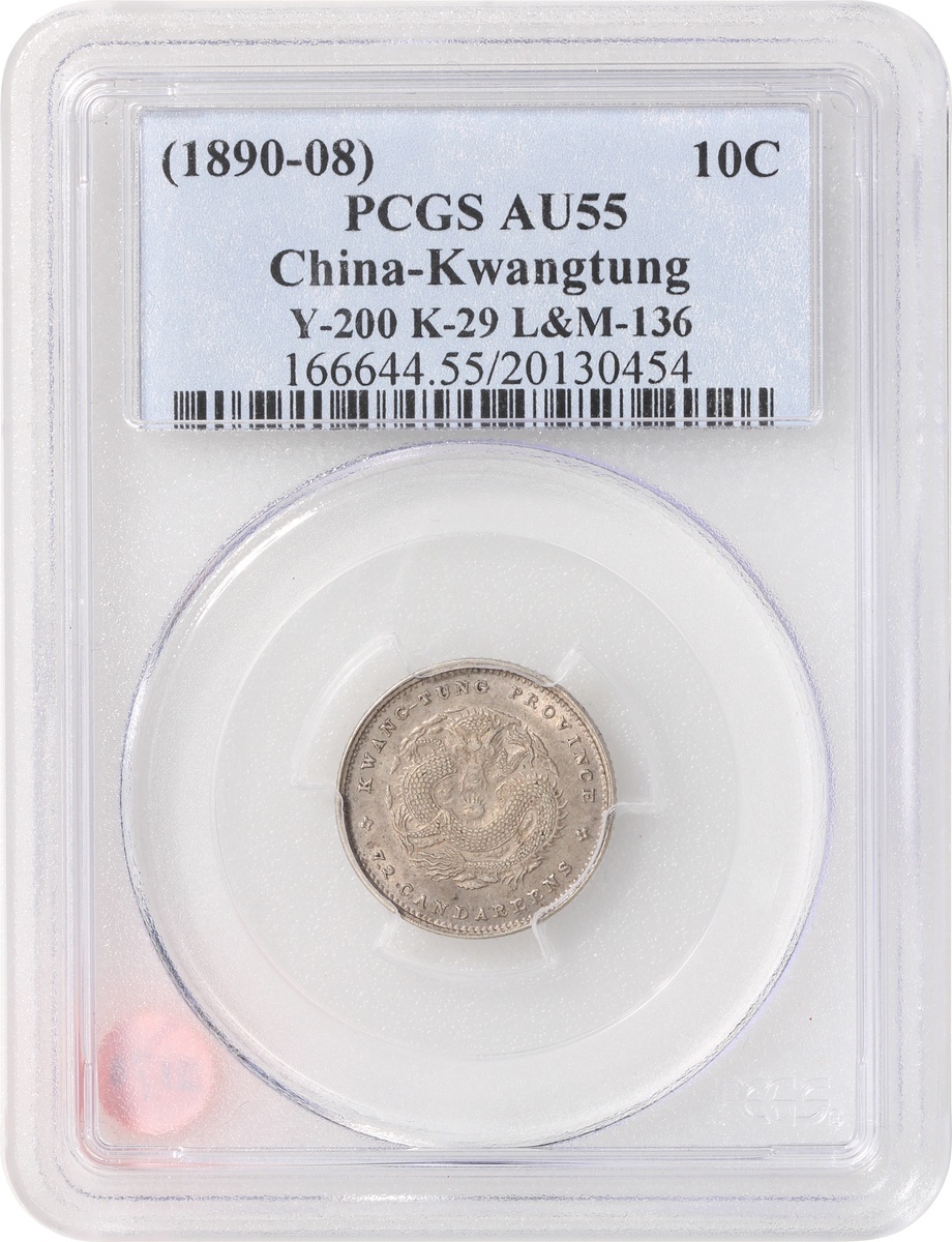 Kwangtung Province, a pair of silver 10 cents and 20 cents, 1890-08, 'Guangxu Yuan Bao', (Y-200, K-29, LM-136 and Y-201, K-28, LM-135), graded PCGS AU55 and MS62 respectively, #20130454 and #20130459 (2).