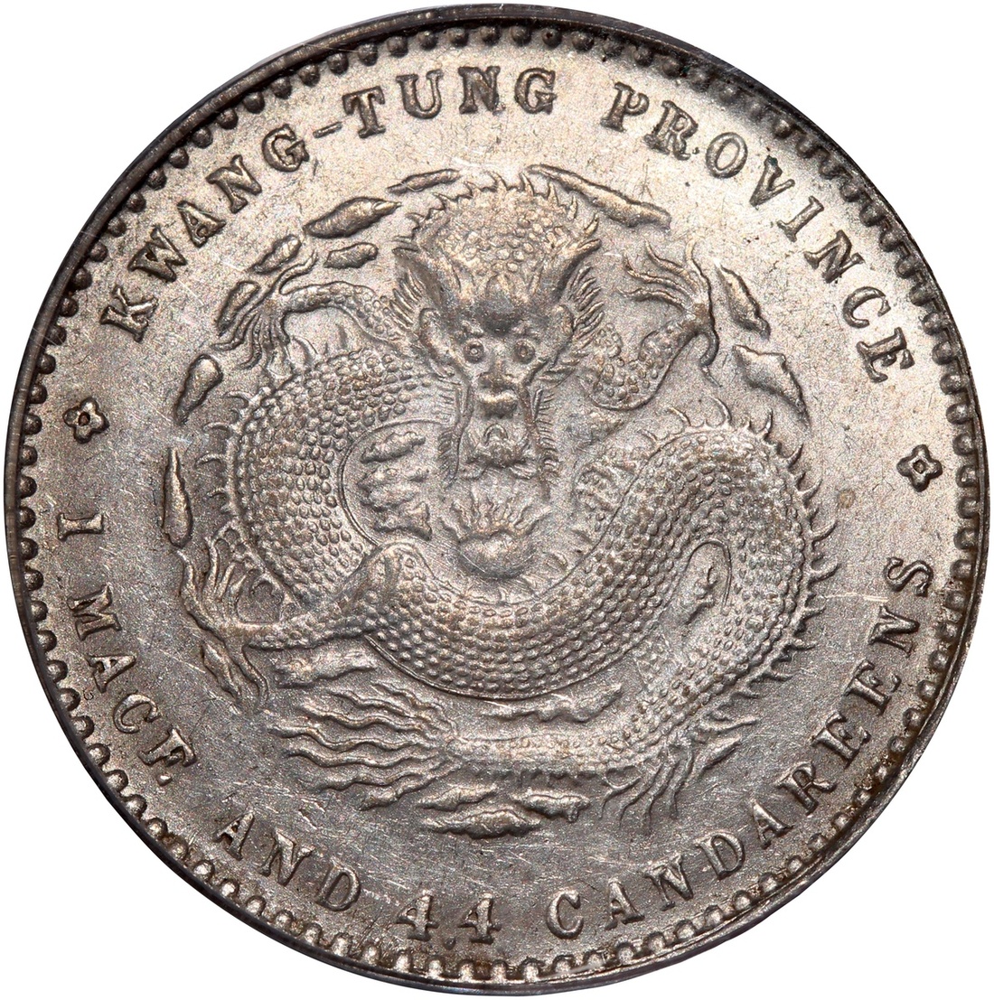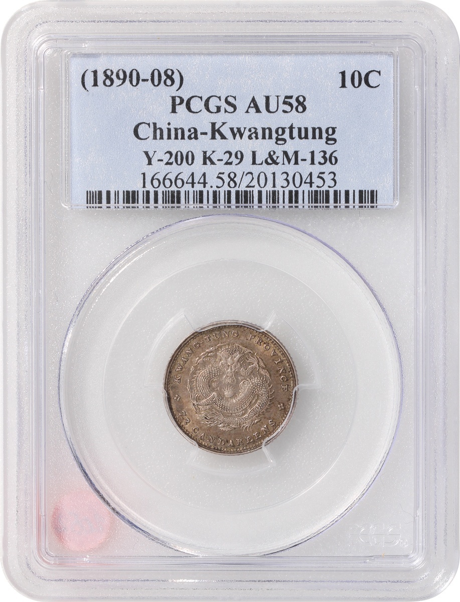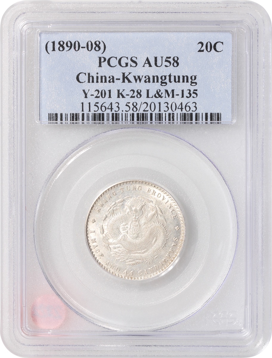 Kwangtung Province, a pair of silver 10 cents and 20 cents, 1890-08, 'Guangxu Yuan Bao', (Y-200, K-29, LM-136 and Y-201, K-28, LM-135), both graded PCGS AU58, #20130453 and 20130463 (2).