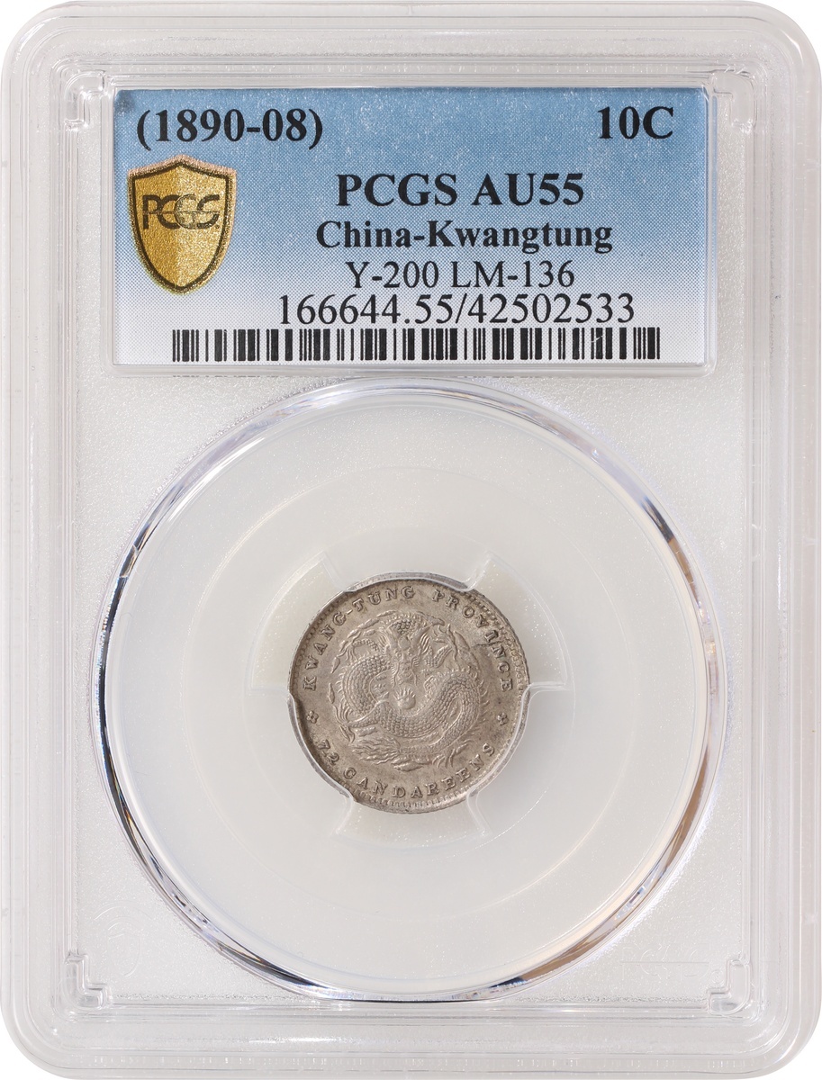 Kwangtung Province, silver 10 cents, ND (1890-1908), 'Guangxu Yuan Bao', (Y-200, LM-136), PCGS AU55, #42502533.