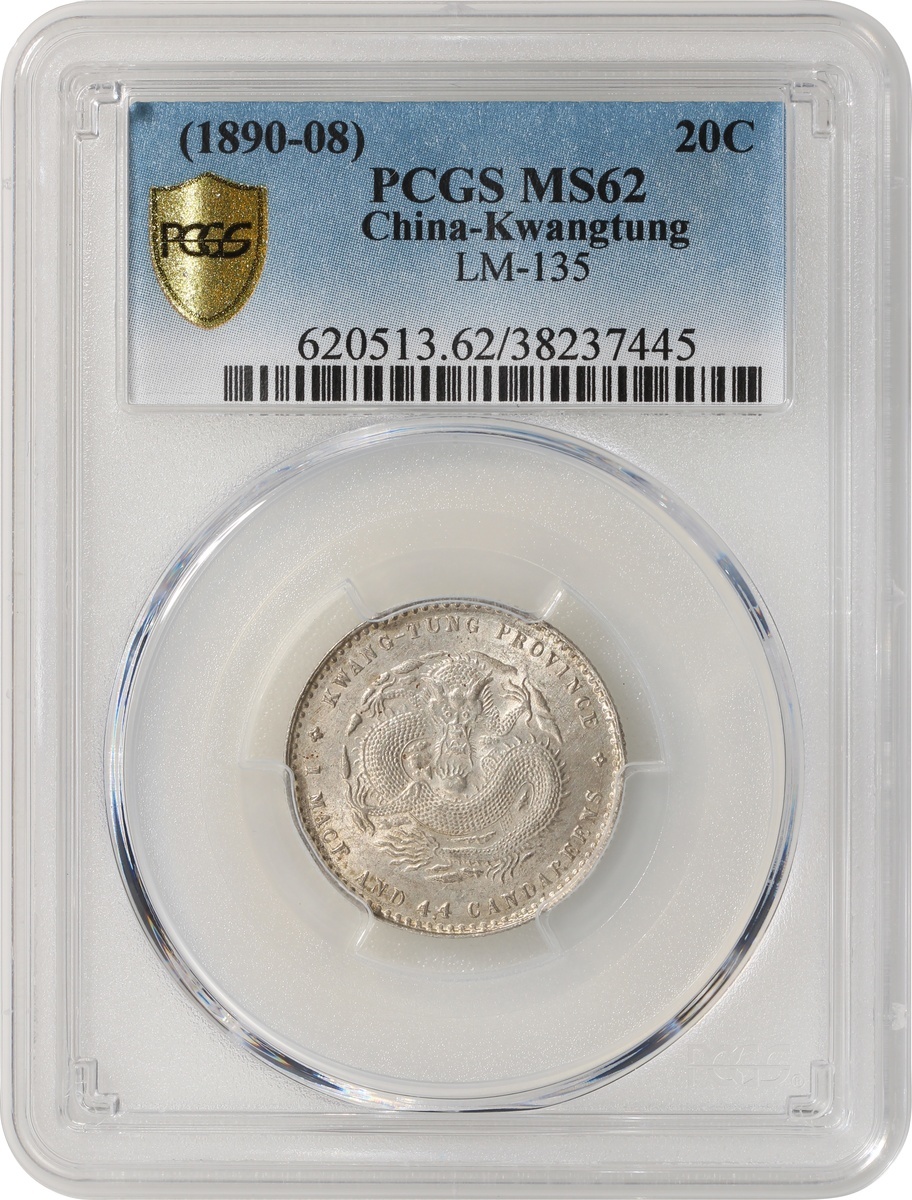 Kwangtung Province, silver 20 cents, Guangxu Yuan Bao, (LM-135), original luster, PCGS MS62. #38237445