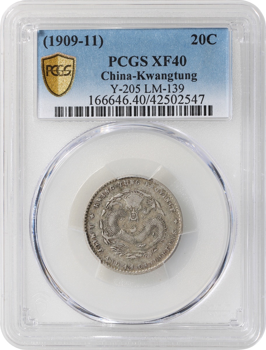清代廣東宣統一錢四分四釐,PCGS XF40,編號42502547
