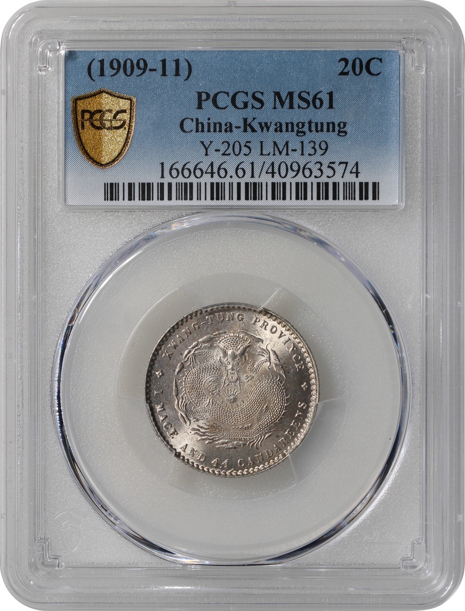 Kwangtung Province, silver 20 cents, Xuantong Yuan Bao, (LM-139), good luster, PCGS MS61. #40963574