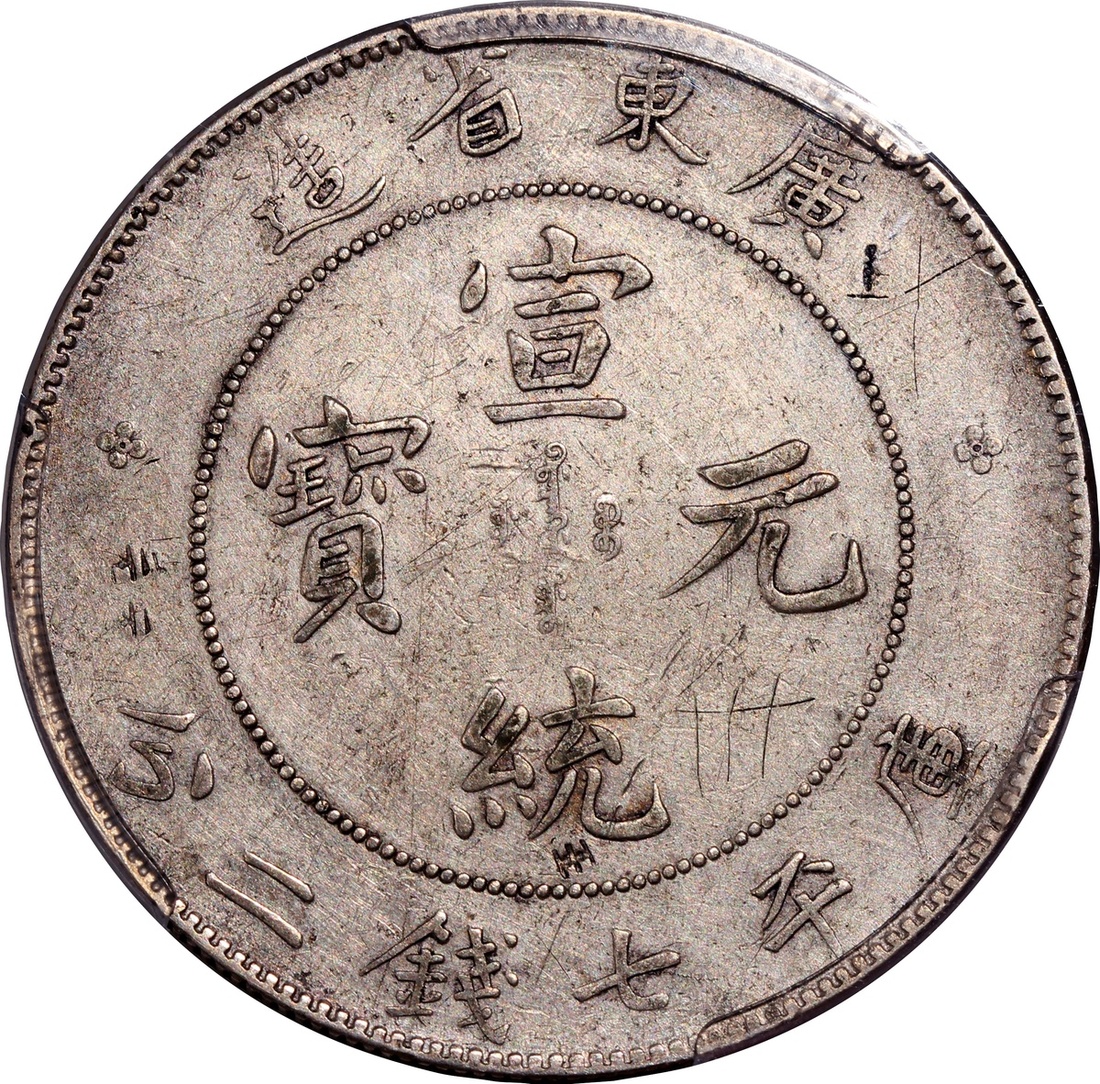 清代廣東宣統七錢二分,PCGS XF,塗鴨,編號42045196