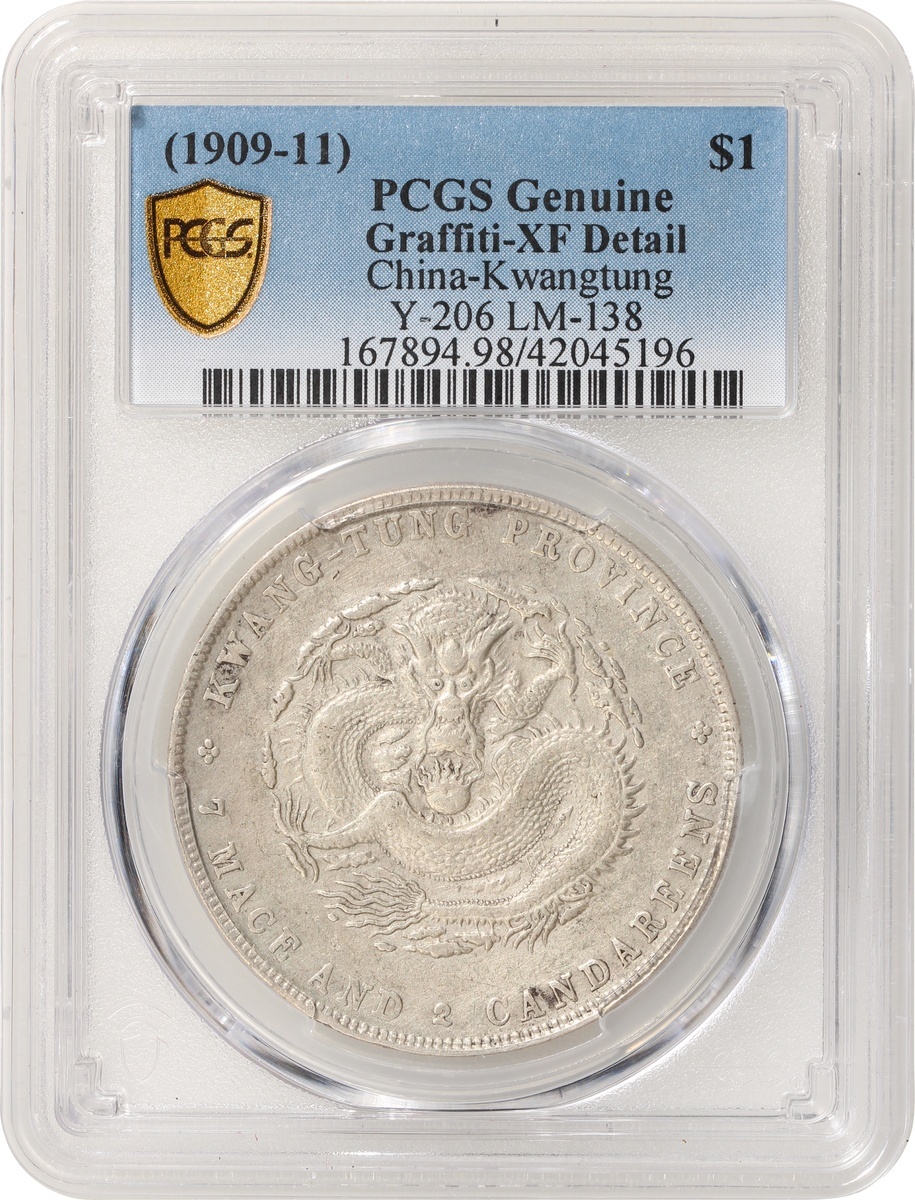 Kwangtung Province, silver $1, no date (1909-11), Xuantong Yuan Bao, (Y-206, LM-138), PCGS Genuine Graffiti - XF Detail, #42045196