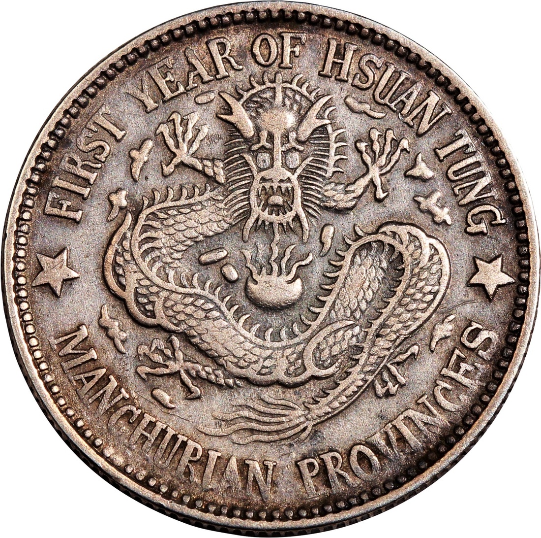 Manchurian Provinces, silver 20 cents, 1st Year of Xuantong (1909), 'Xuantong Yuan Bao', raw about uncirculated