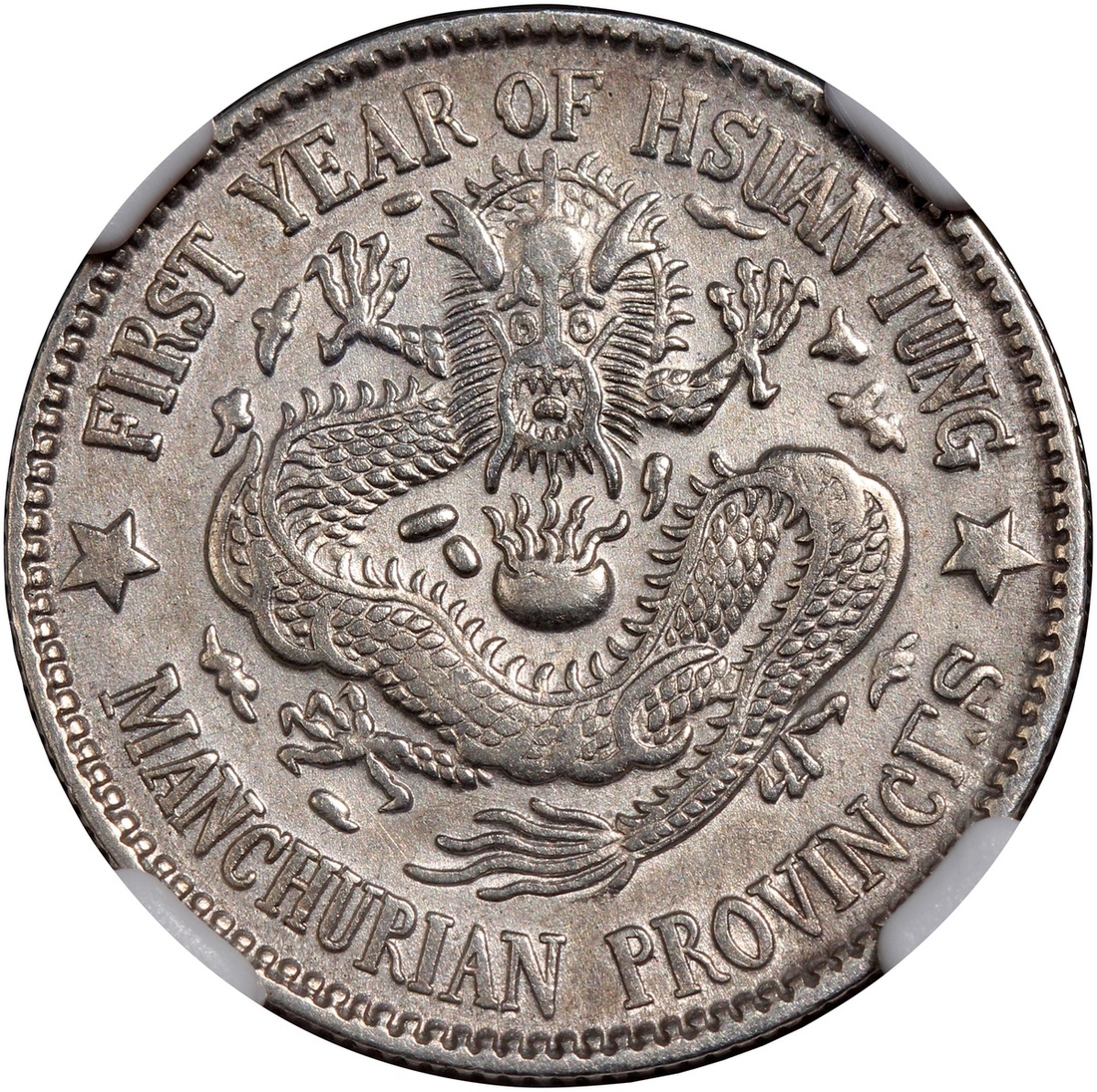 Manchurian Provinces, silver 20 cents, 1st Year of Xuantong (1909), 'Xuantong Yuan Bao', 3 stars variety,