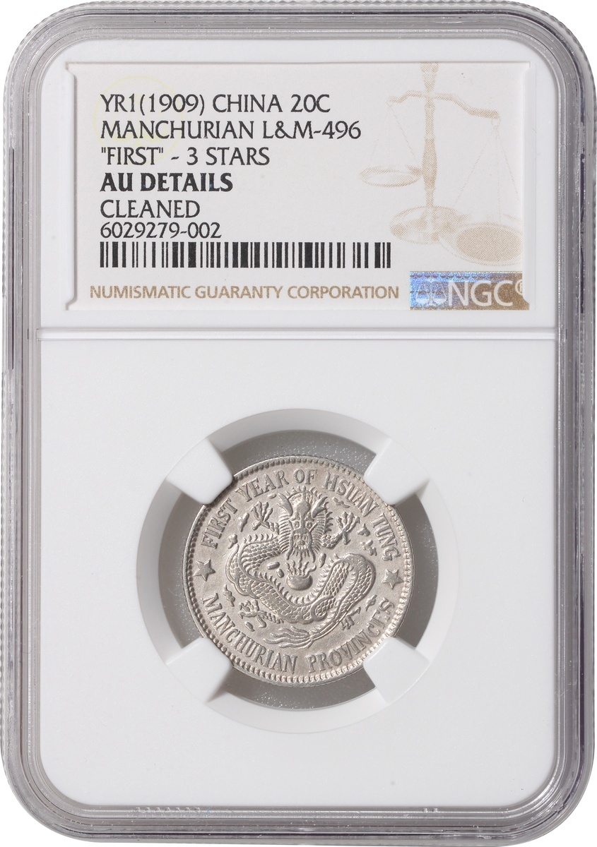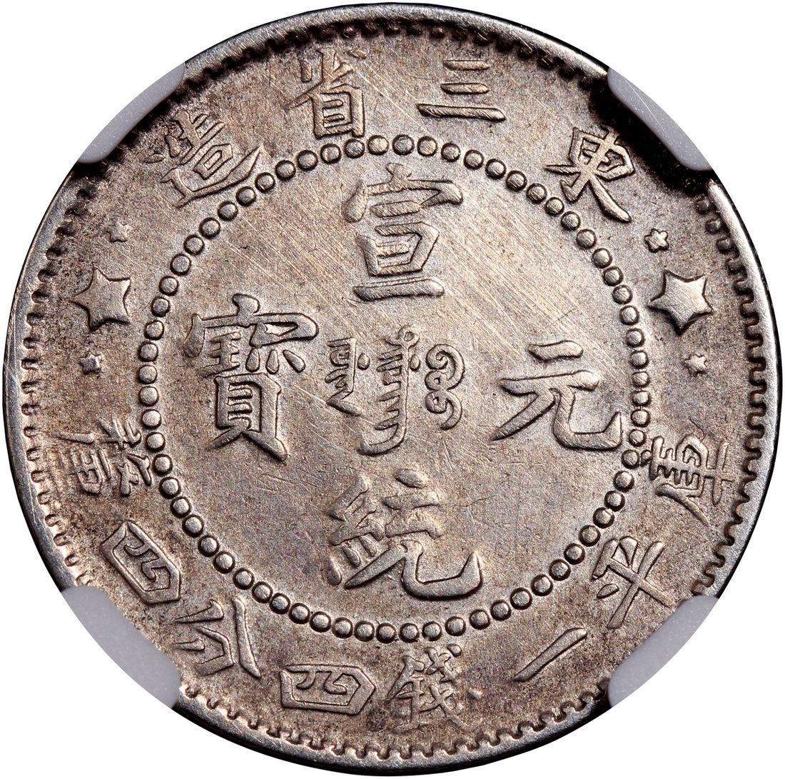 清代東三省宣統一錢四分四釐,三星版,NGC AU,有清洗
