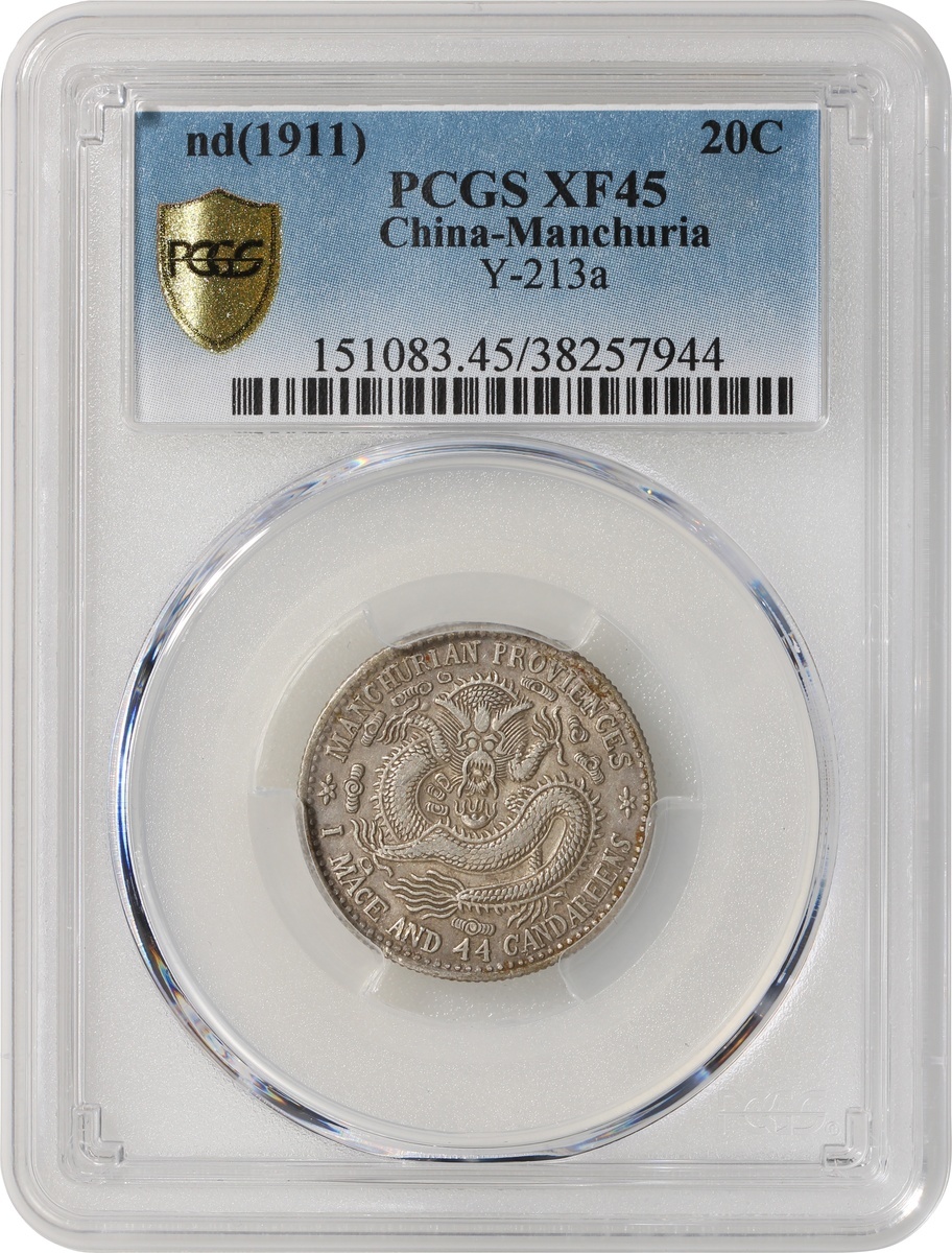 Manchuria Province, silver 20 cents, Xuantong Yuan Bao, ND(1911), (Y-213a), PCGS XF45. #38257944