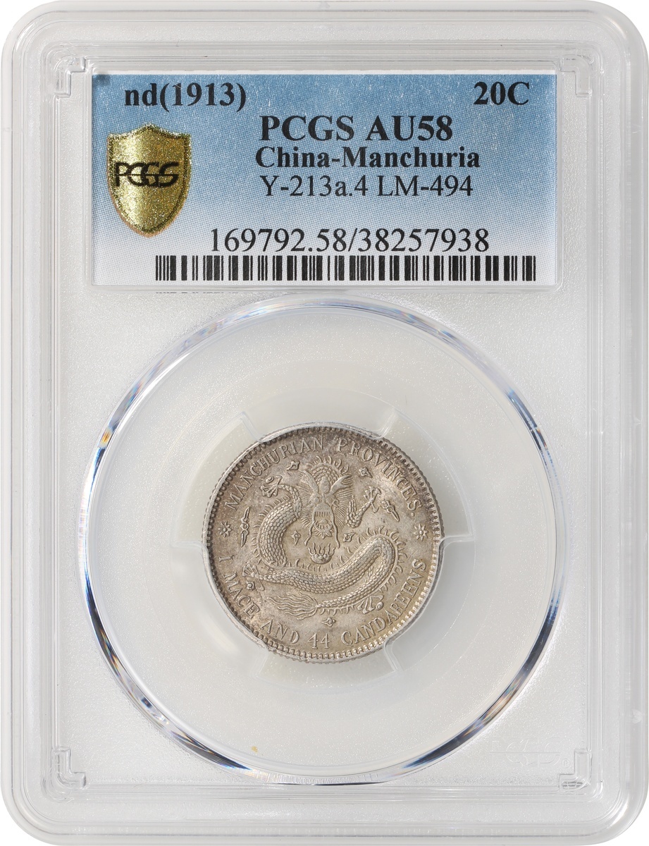 Manchuria Province, silver 20 cents, Xuantong Yuan Bao, ND(1913), (Y-213a.4, LM-494), PCGS AU58. #38257938
