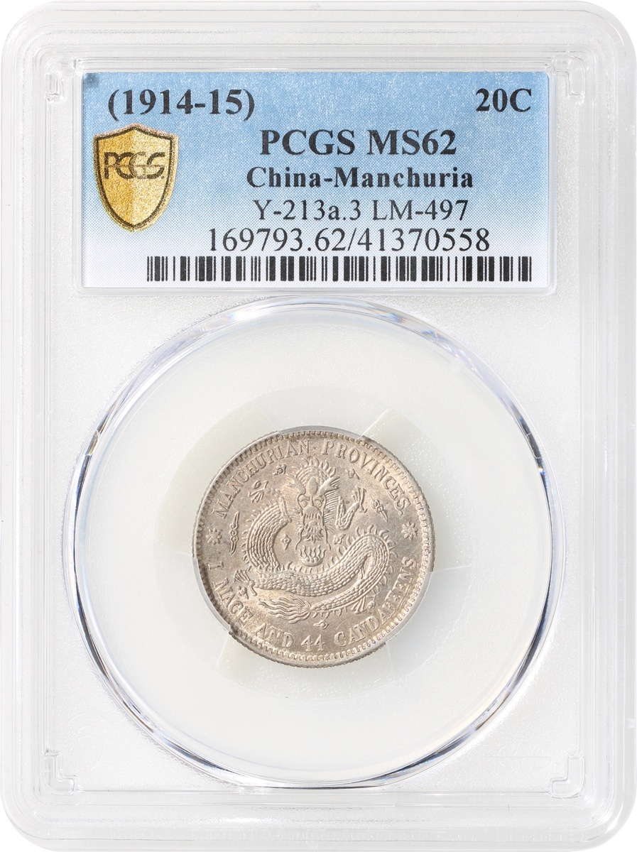 Manchuria, silver 20 cents, ND (1914-1915), 'Xuantong Yuan Bao', (Y-213a.3, LM-497), PCGS MS62, #41370558.