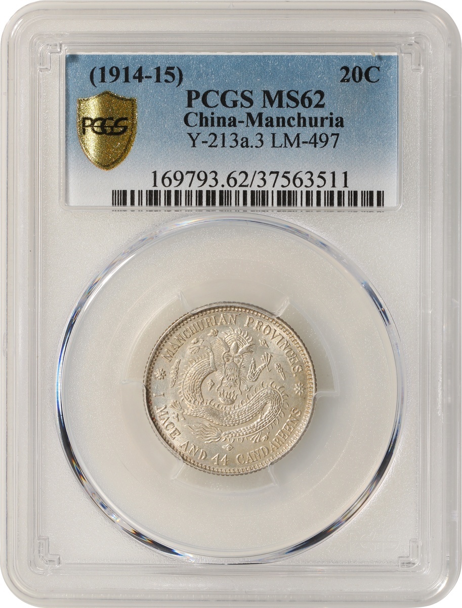Manchuria Province, silver 20 cents, Xuantong Yuan Bao, (1914-15), (Y-213a.3, LM-497), PCGS MS62. #37563511
